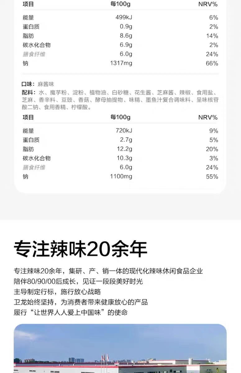 wei long spicy konjac sesame sauce vegetarian ox tripe 210g (a box of 13 small bags)