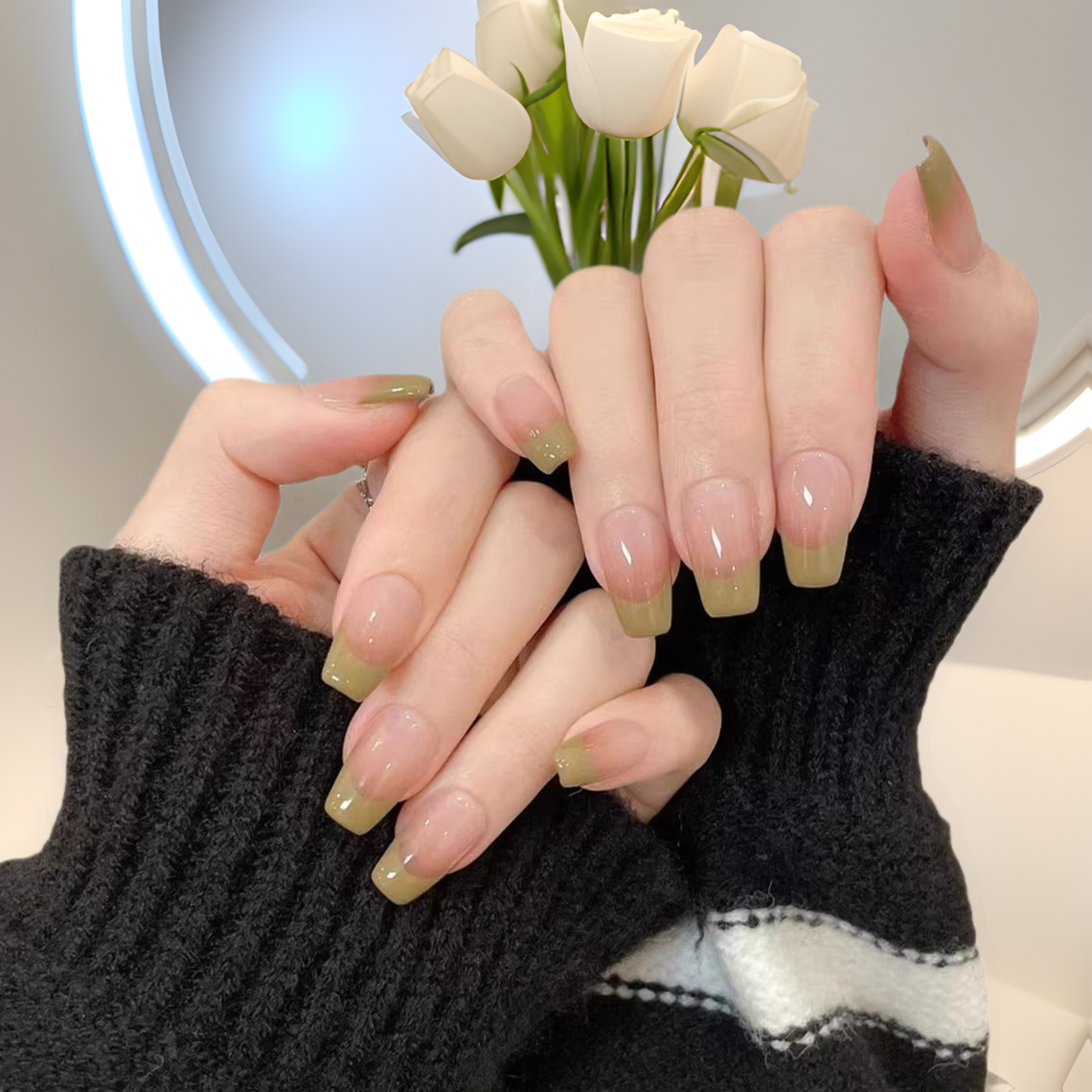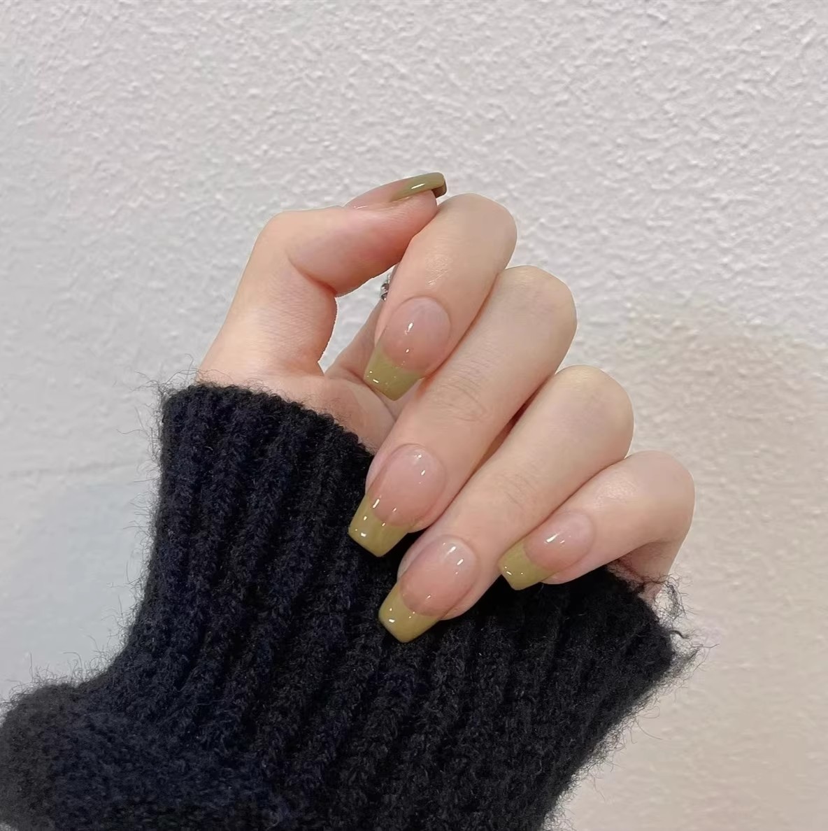 handmade french nail wear short green summer simple hand-painted handmade finished wear white 中文版