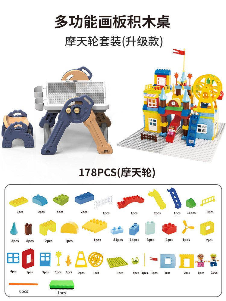 y1003 folding drawing board building table + chair + brush eraser +178pcs ferris wheel castle building blocks