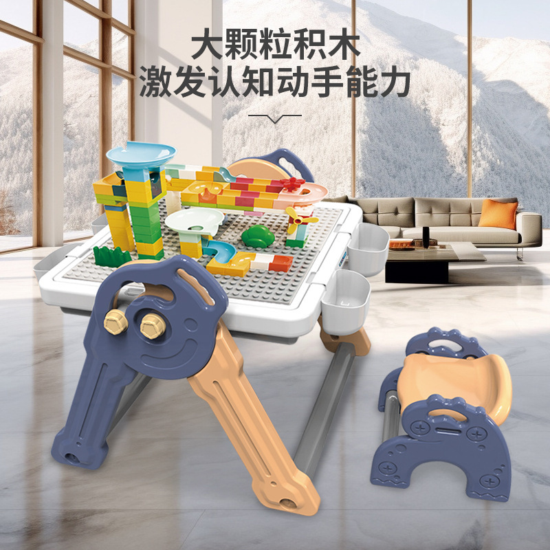 y1002 folding drawing board building table + chair + brush eraser +102pcs pipe ball building blocks