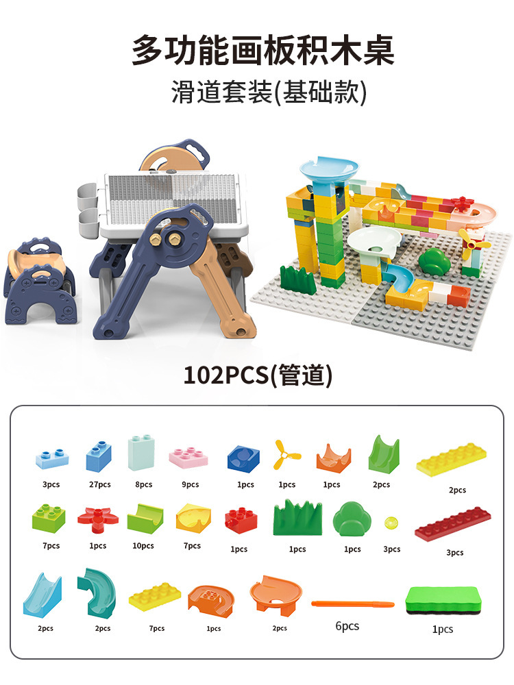 y1005 drawing board building table + chair + brush board +102pcs pipe ball building blocks