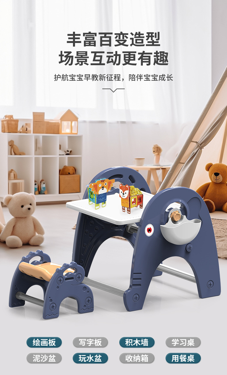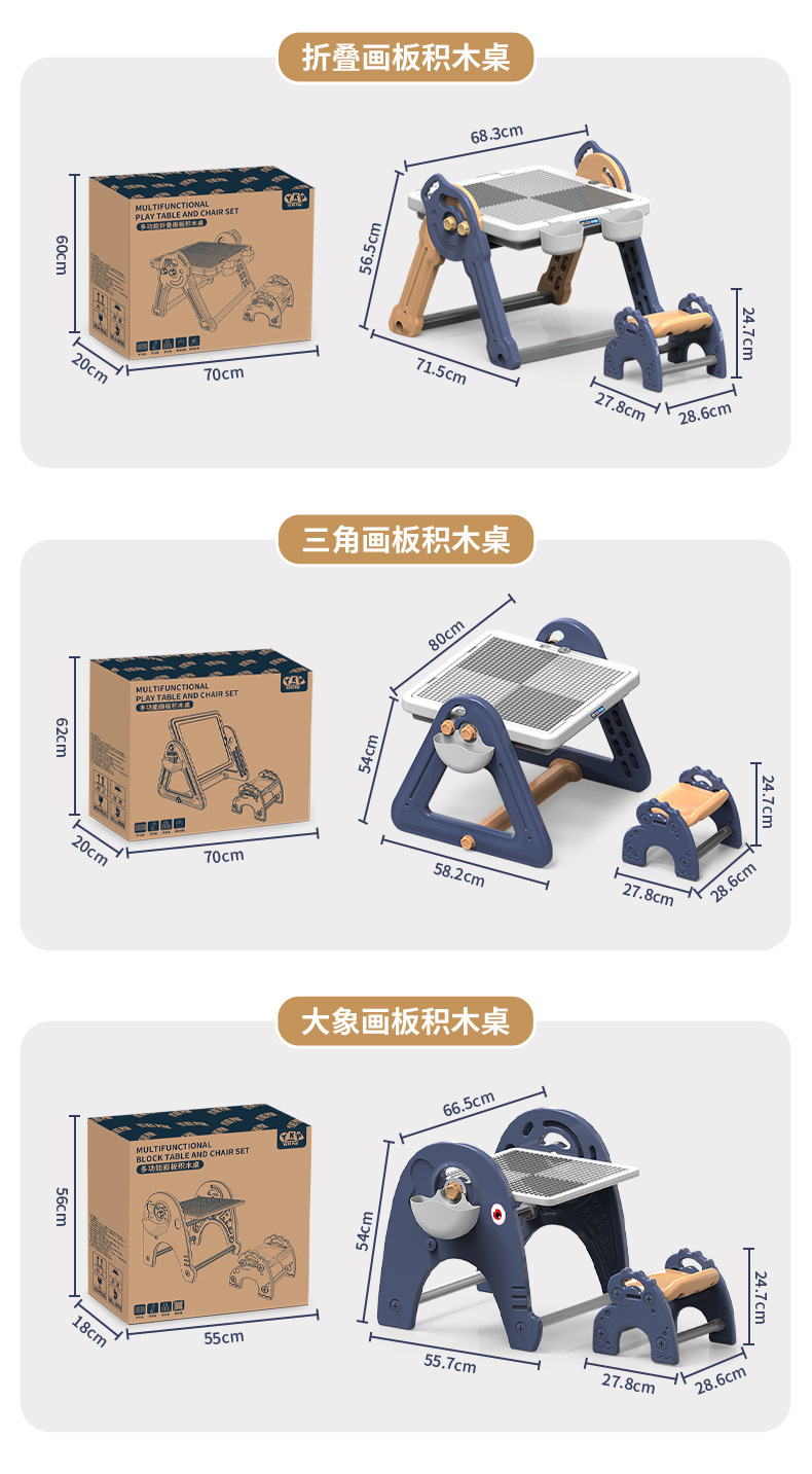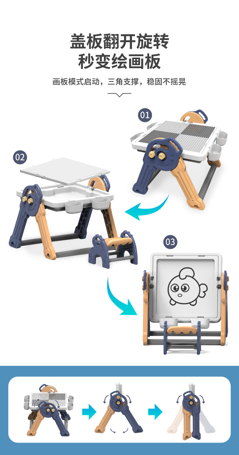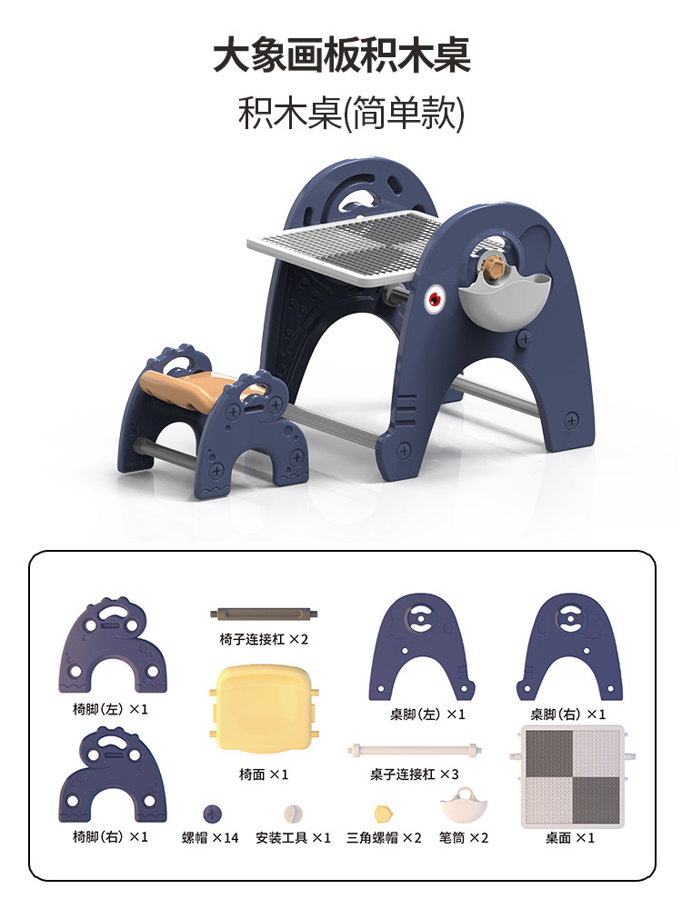 y1008 drawing board building table + chair + brush board +66pcs animal building blocks