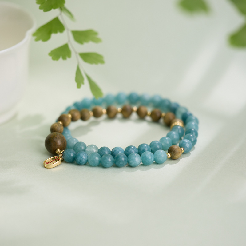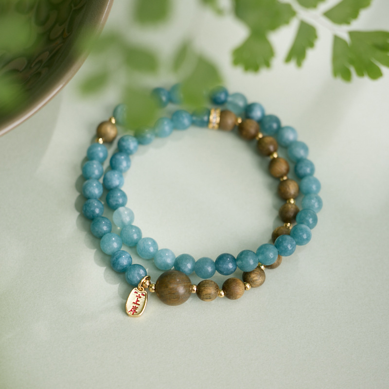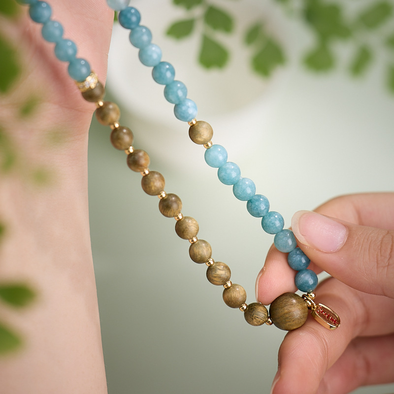 | Name | Jiuhua Blessing Series 6MM Blue Aquamarine, Green Sandalwood Double-loop, Landing Bracelet