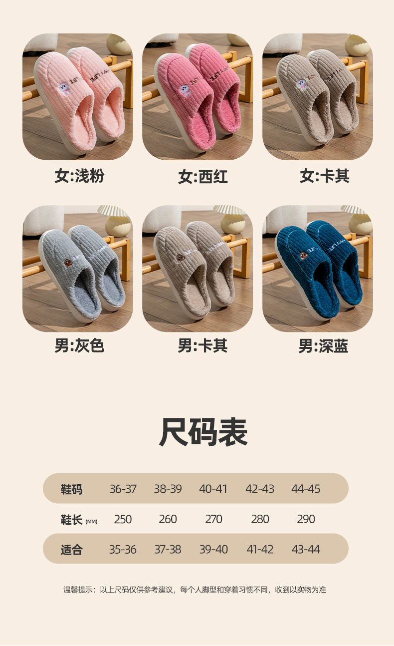 cotton slippers spring and autumn men's winter household indoor non-slip home warm couple winter velvet women 中文版