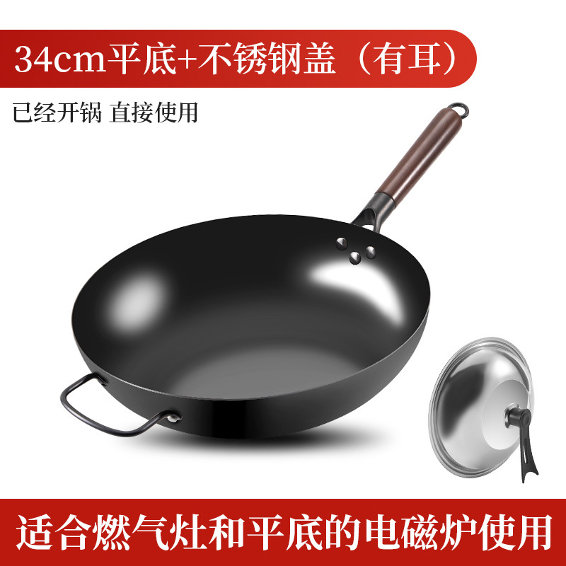 deep nitrogen iron pot 34cm flat bottom + stainless steel cover + color box (u are)