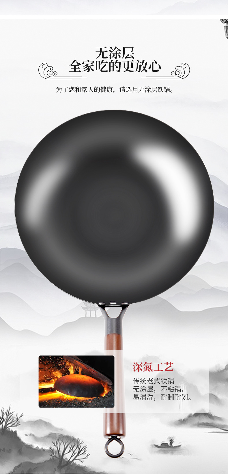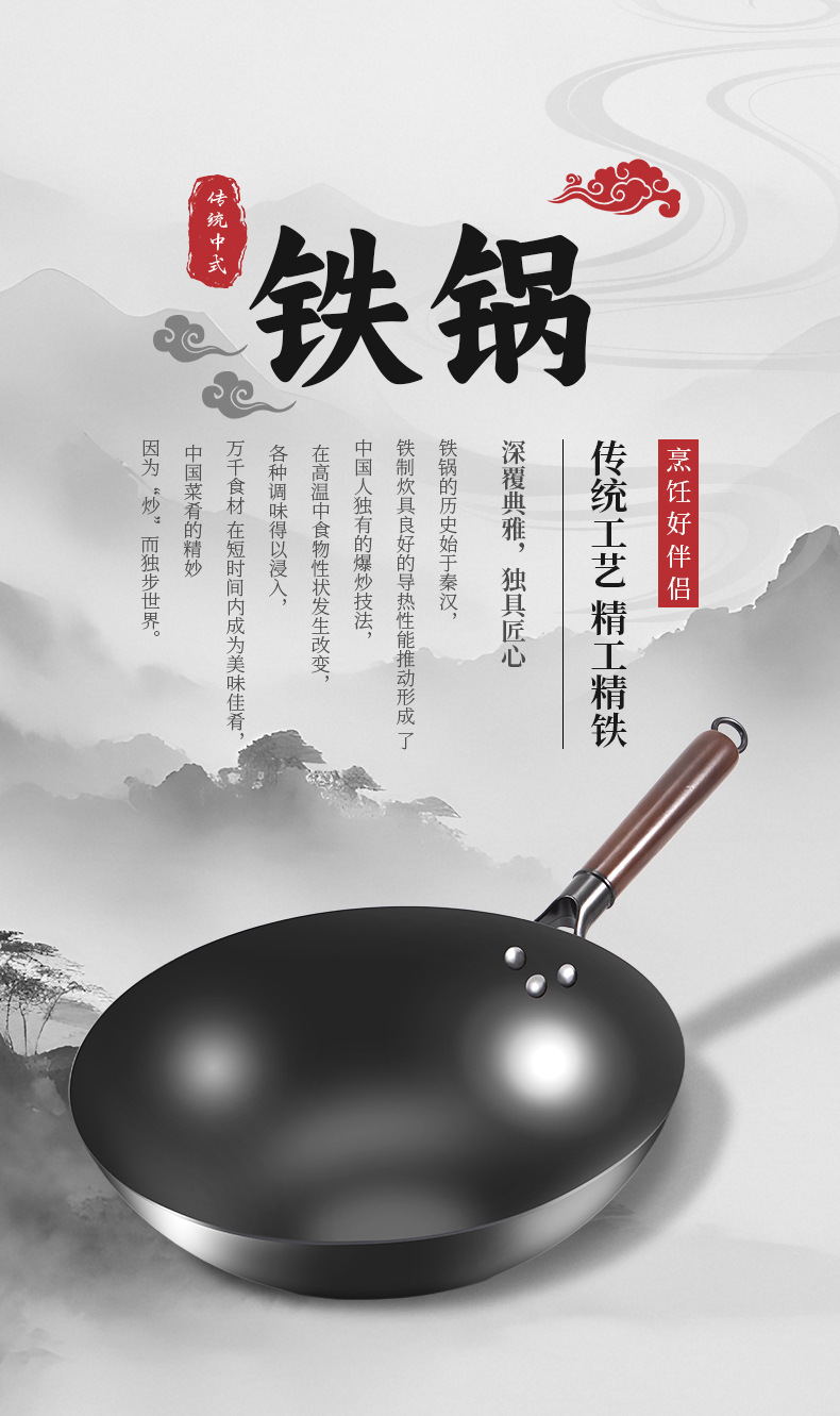 deep nitrogen iron pot 30cm flat bottom without lid