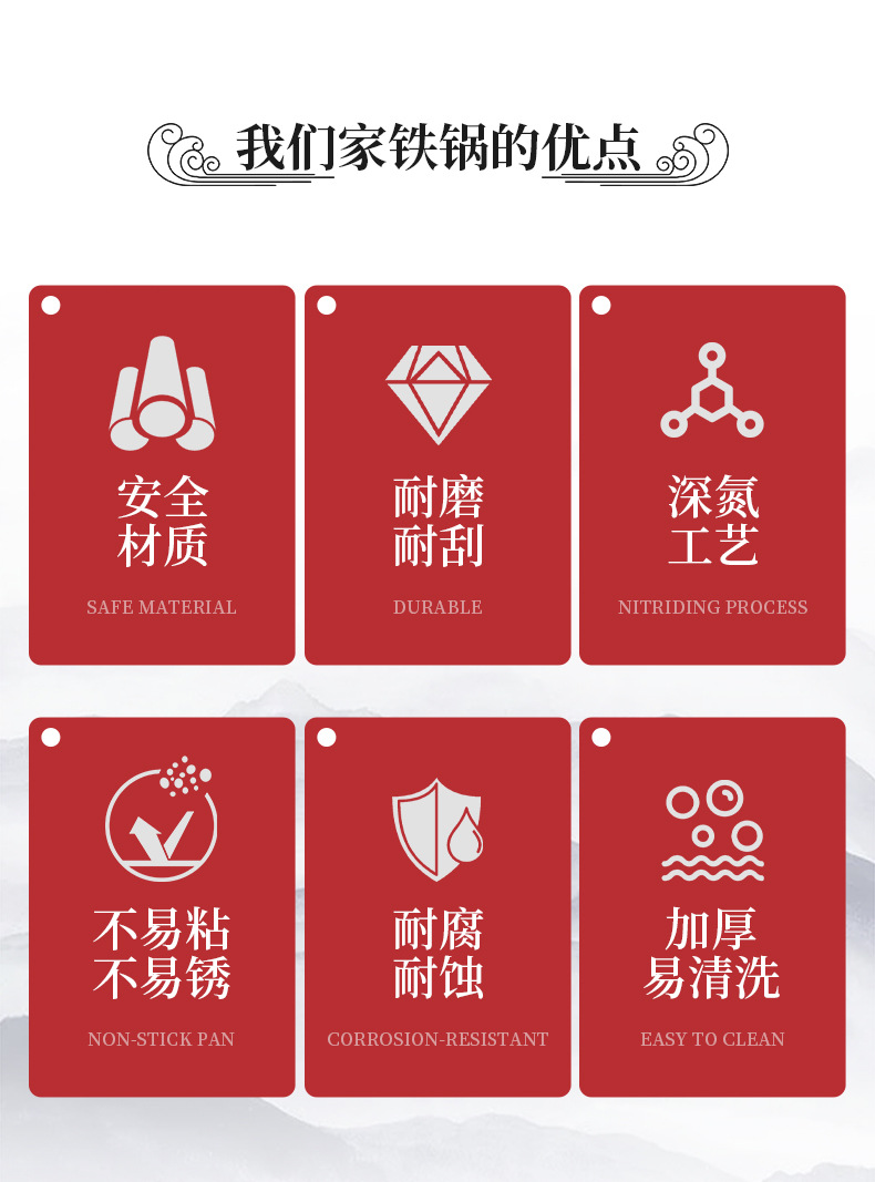 deep nitrogen iron pot 32cm flat bottom + stainless steel cover + color box