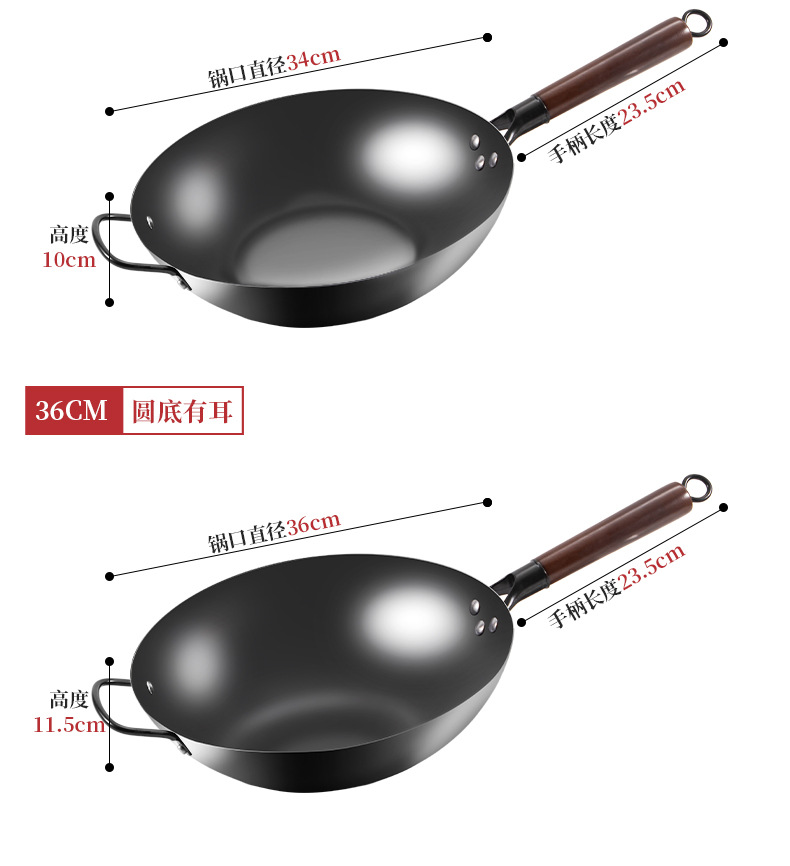 deep nitrogen iron pot 34cm round bottom + stainless steel cover + color box (no ear)