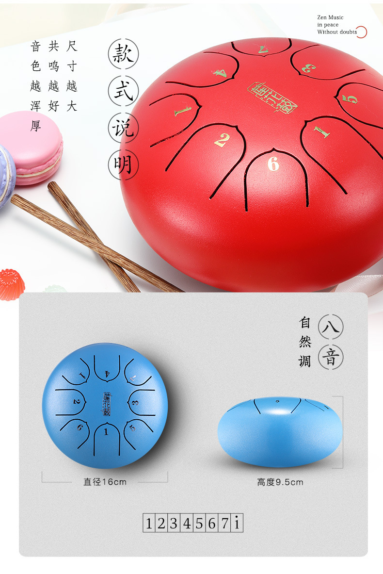 lotus carbon steel style 6-inch 8-tone sky blue + finger stall (english song sheet)