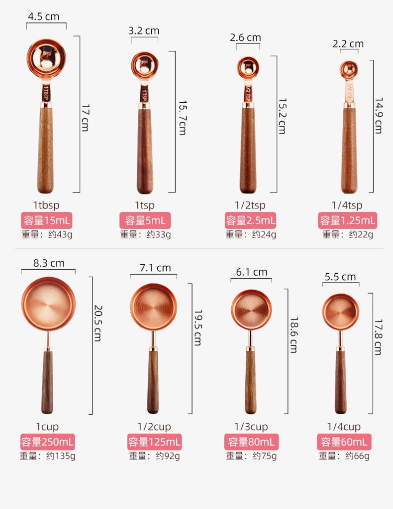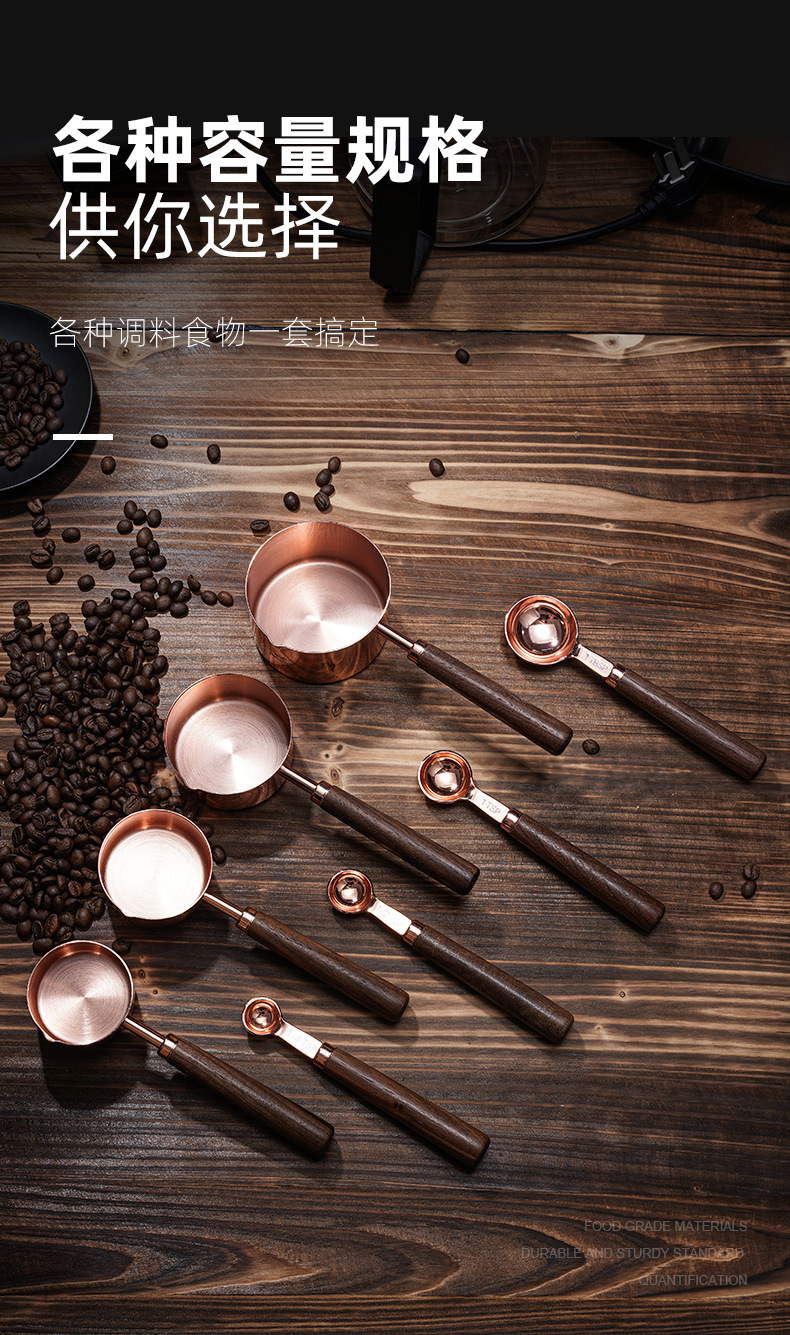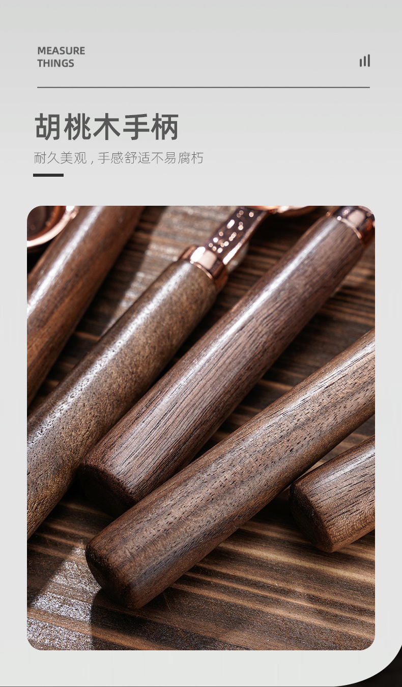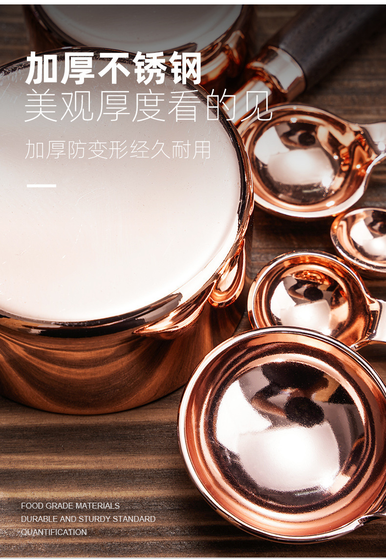 hf53glp single-mouth walnut wooden handle rose gold measuring cup 4-piece set