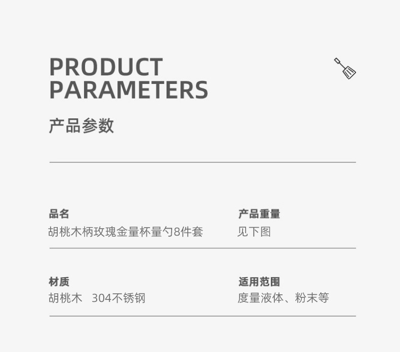 f066gl-f067gl-p034 walnut measuring cup measuring spoon eight-piece set (color box package)