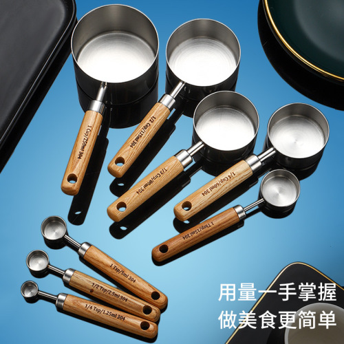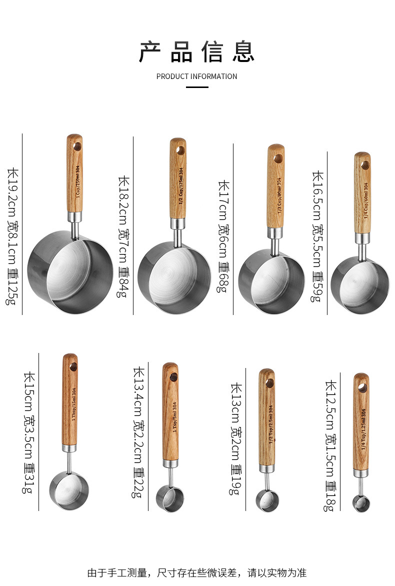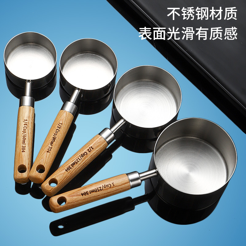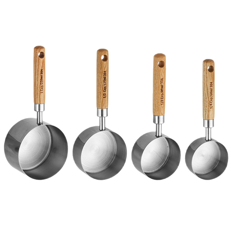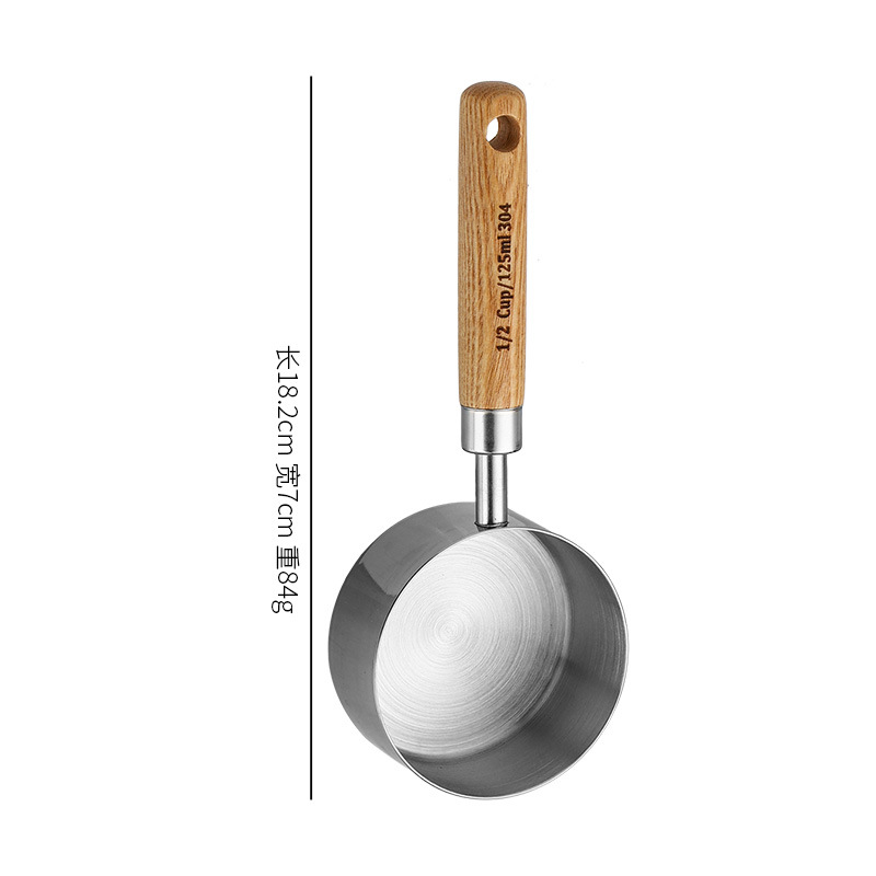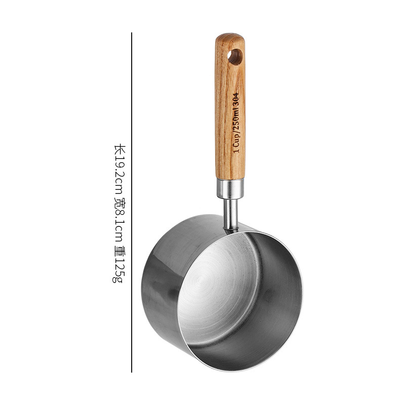 silver measuring cup 250ml manchurian ash wooden handle +304