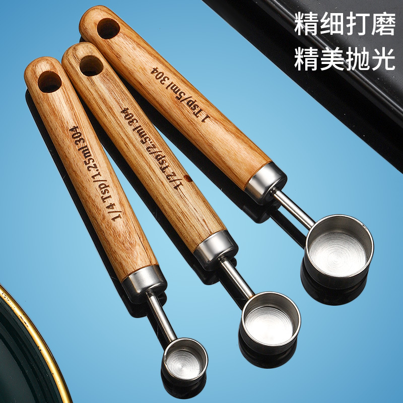 silver measuring spoon 2.5 manchurian ash wooden handle +304