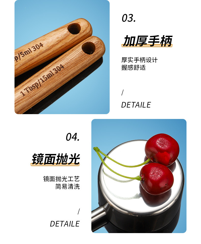 silver measuring spoon 15ml manchurian ash wooden handle +304