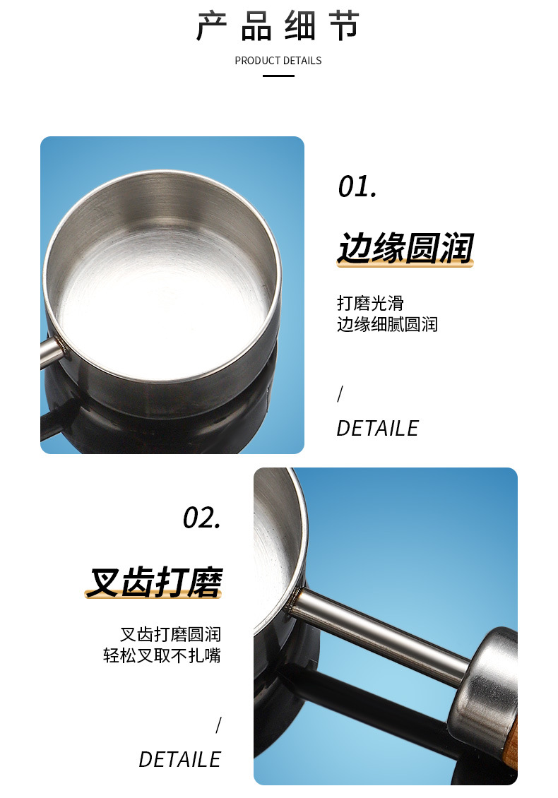 silver measuring cup 80ml manchurian ash wooden handle +304