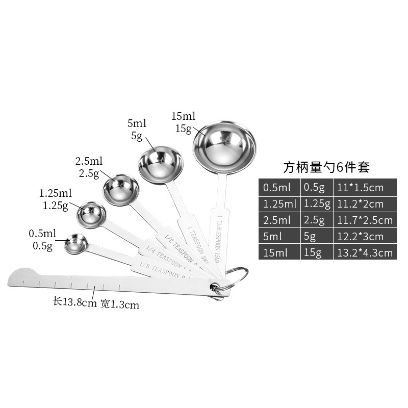 430 coffee spoon clip + square handle 6-piece set including ruler + measuring cup 5-piece set (brown box)