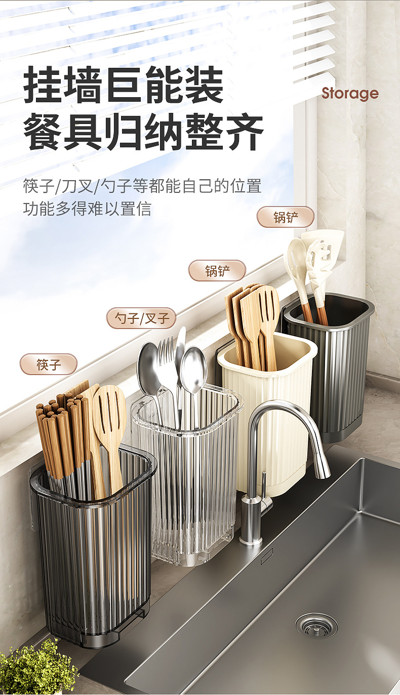 light luxury chopsticks rack wall hanging household chopsticks tube kitchen family new drain storage box chopsticks basket chopsticks cage