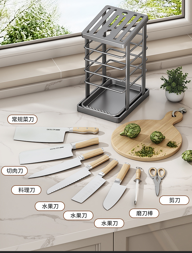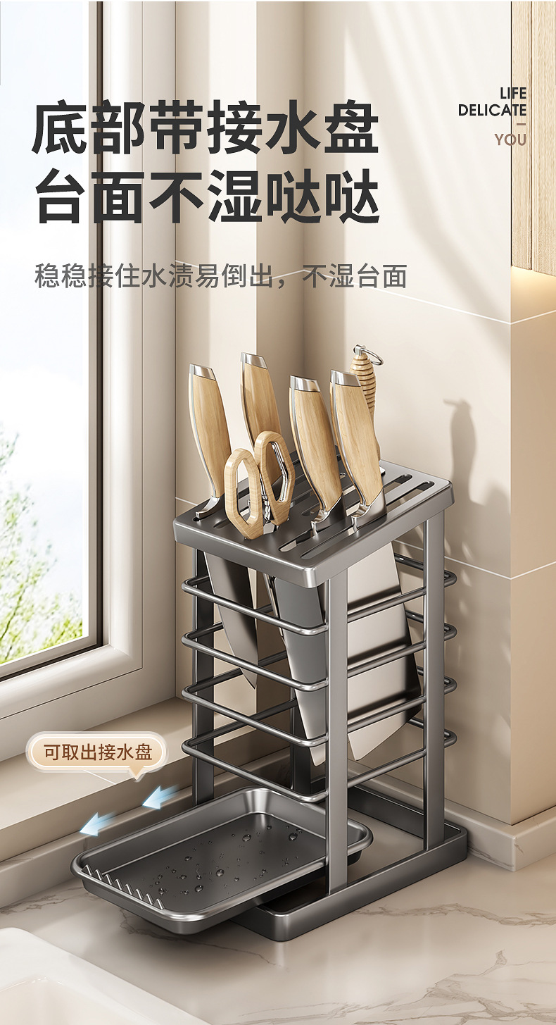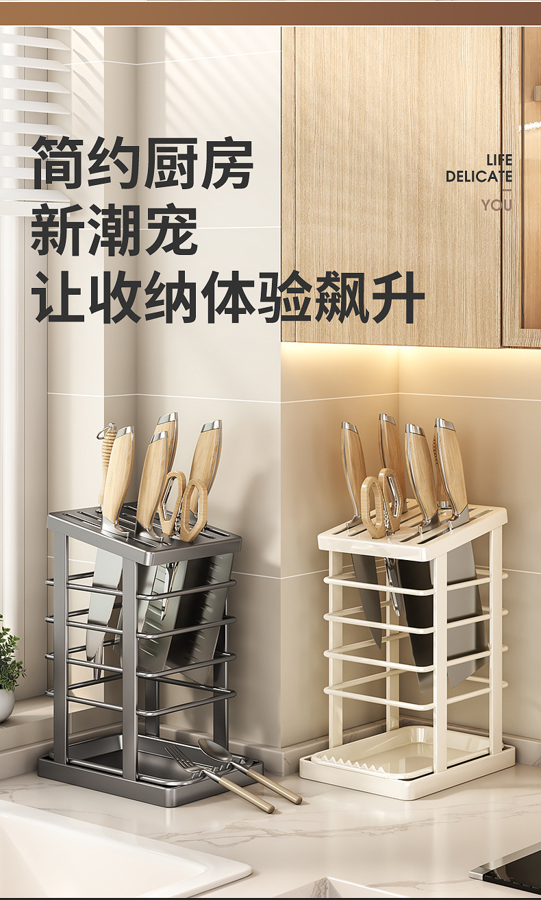 cross-border kitchen knife rack storage rack new table draining integrated knife storage rack kitchen knife rack household knife holder