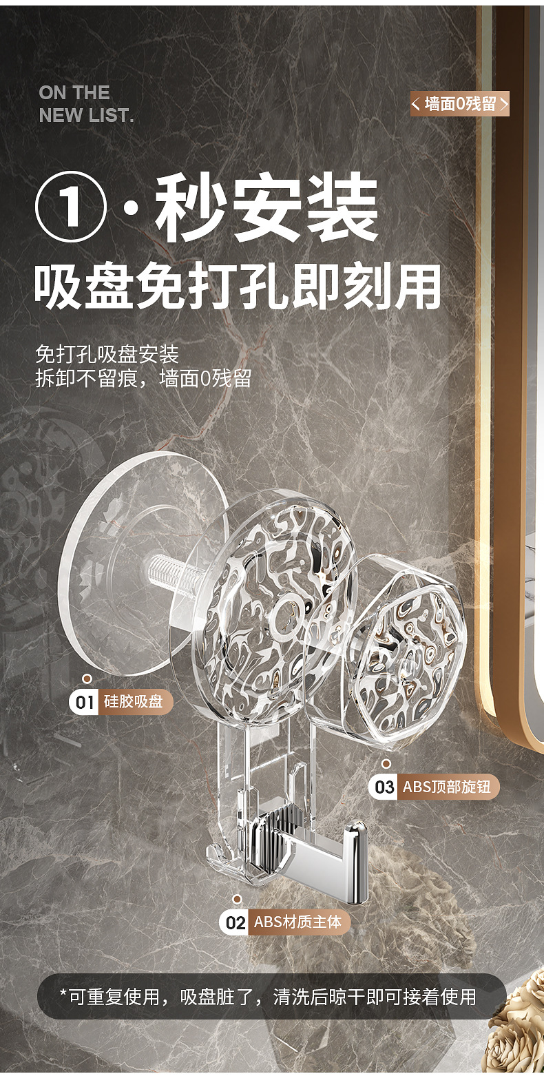 new rotating patch hook punch-free strong household bathroom kitchen bathroom hook hook clothes hanger