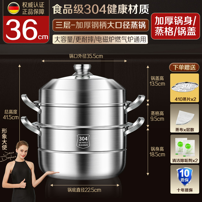 steel ear [304 stainless steel] steamer 36 three layers