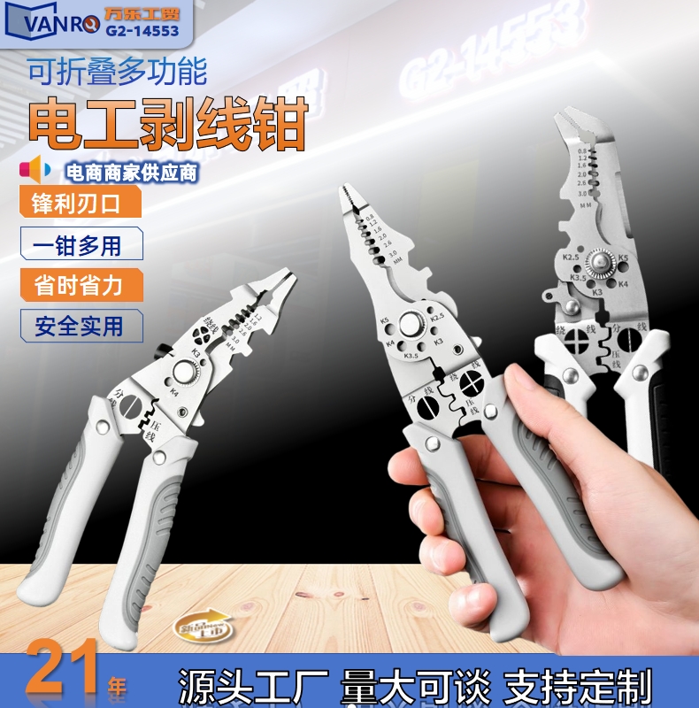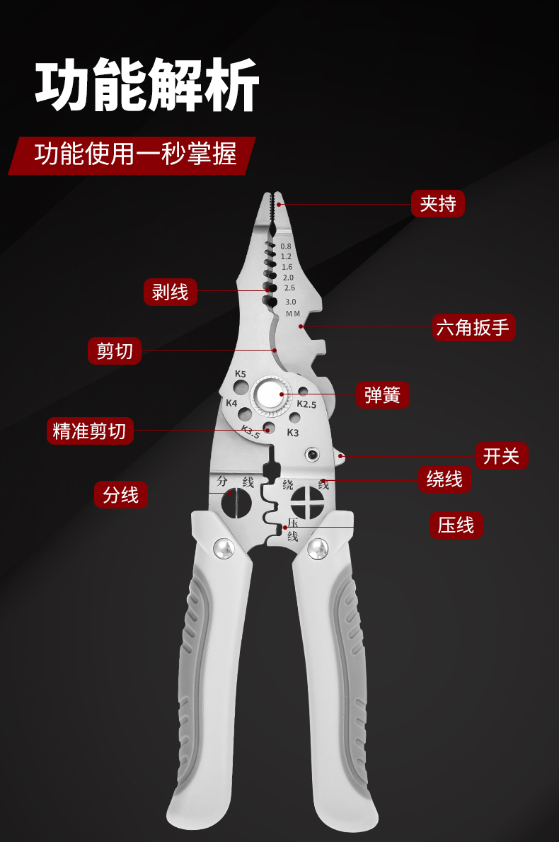 electrical special multi-functional multi-purpose wire stripper sub-electrician wiring line dialing tool home scissors multi-purpose with a clamp 中文版