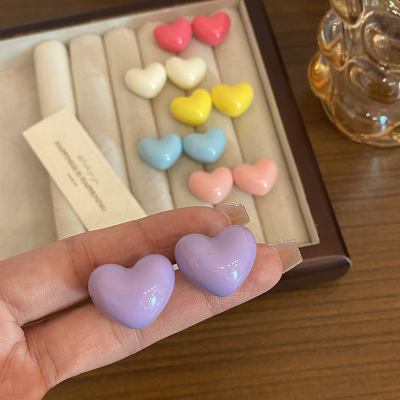925 silver needle -- purple love heart stud earrings (aa2134)
