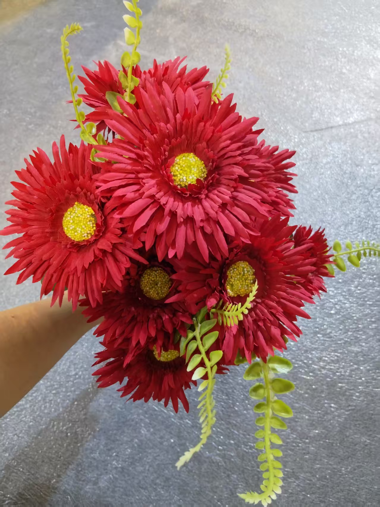 simulation 7-head fine leaf chrysanthemum wholesale plastic flowers raw silk chrysanthemum indoor and outdoor ornamental flower sacrifice qingming easter flower