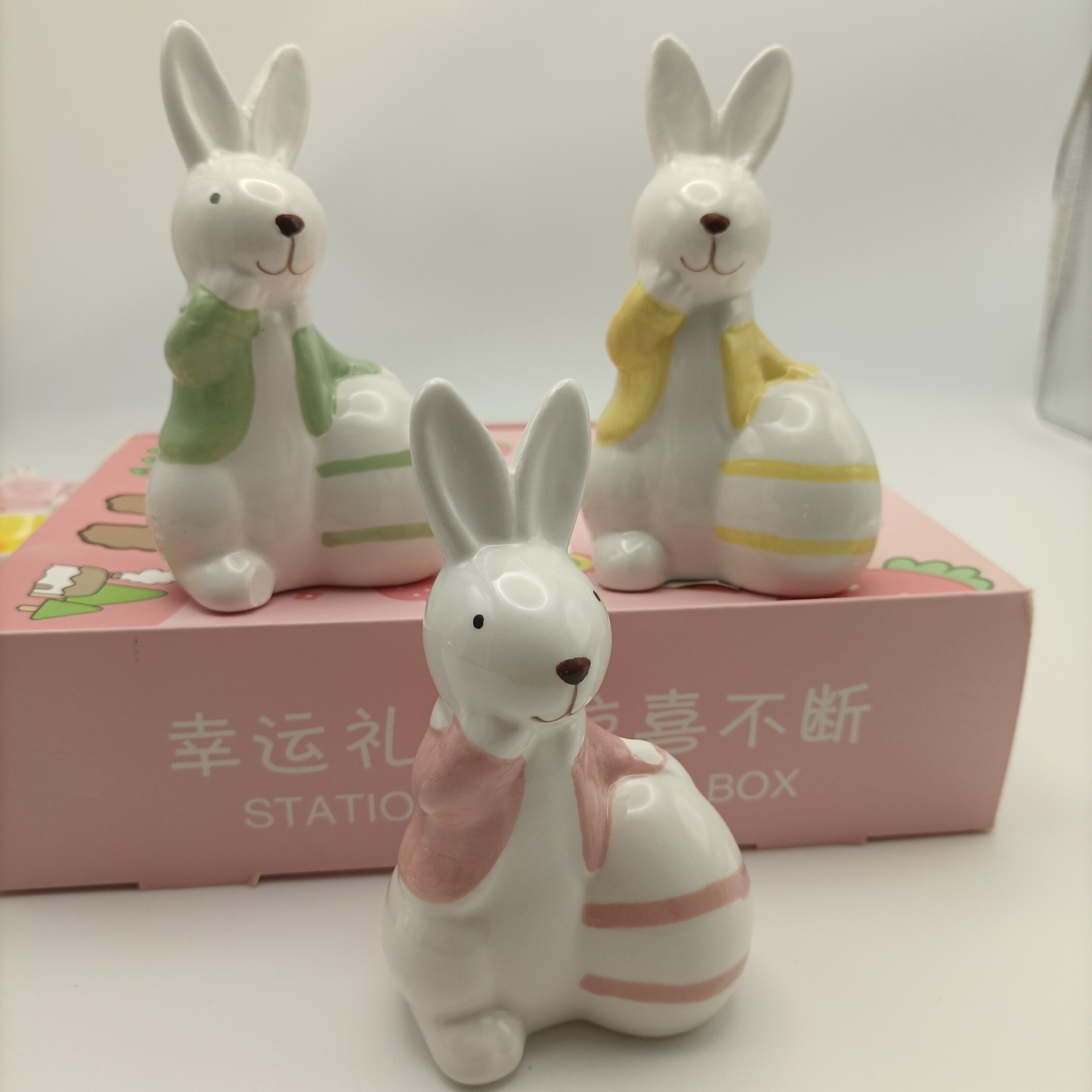 source factory ceramic easter rabbit egg decoration living room entrance home decoration porcelain hand painted rabbit 中文版