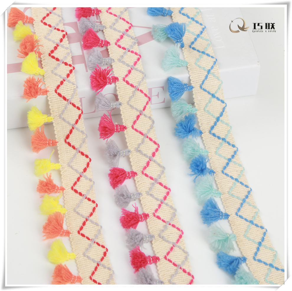 in stock wholesale color broom tassel ribbon lace qiaolian barcode with decorative border clothing curtains home diy accessories 中文版