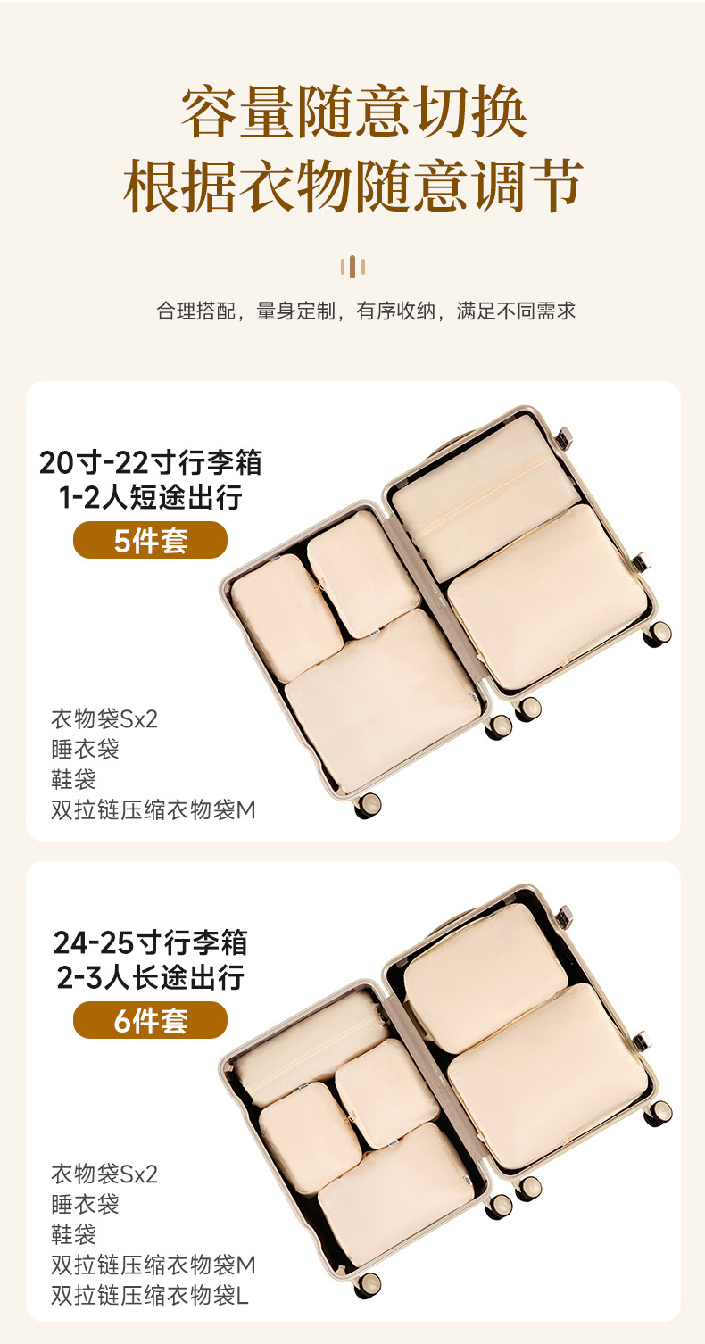apricot beige-6-piece set (suitable for 24-25-inch luggage)