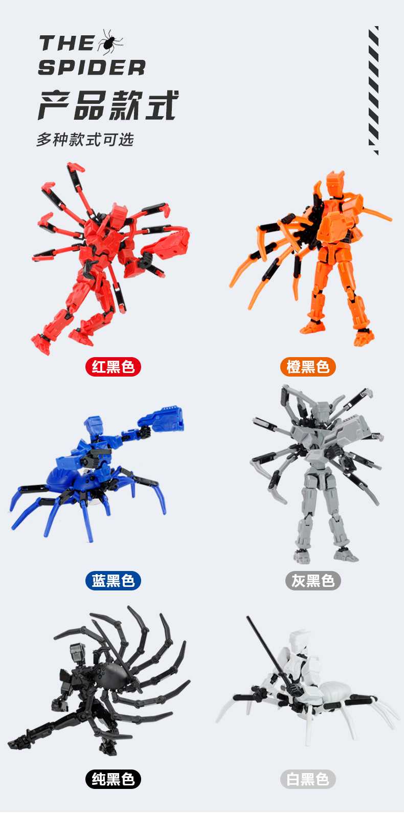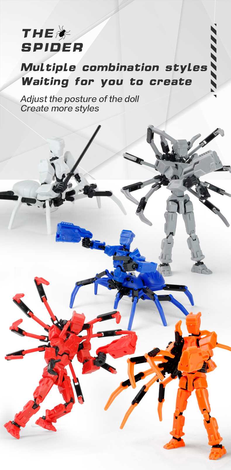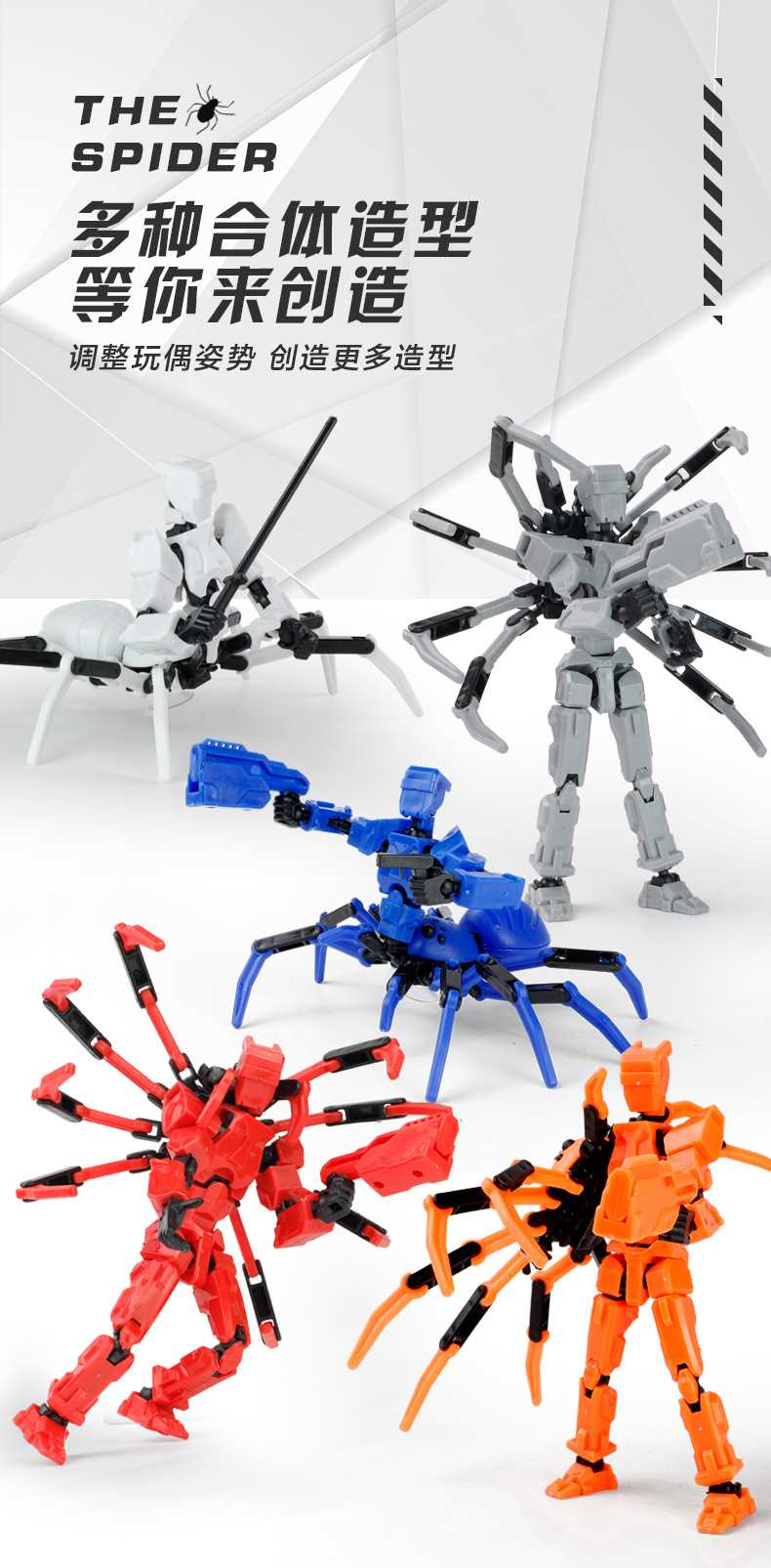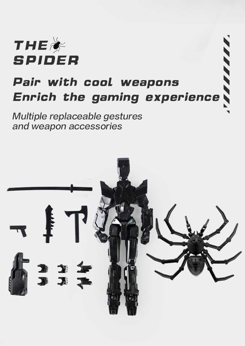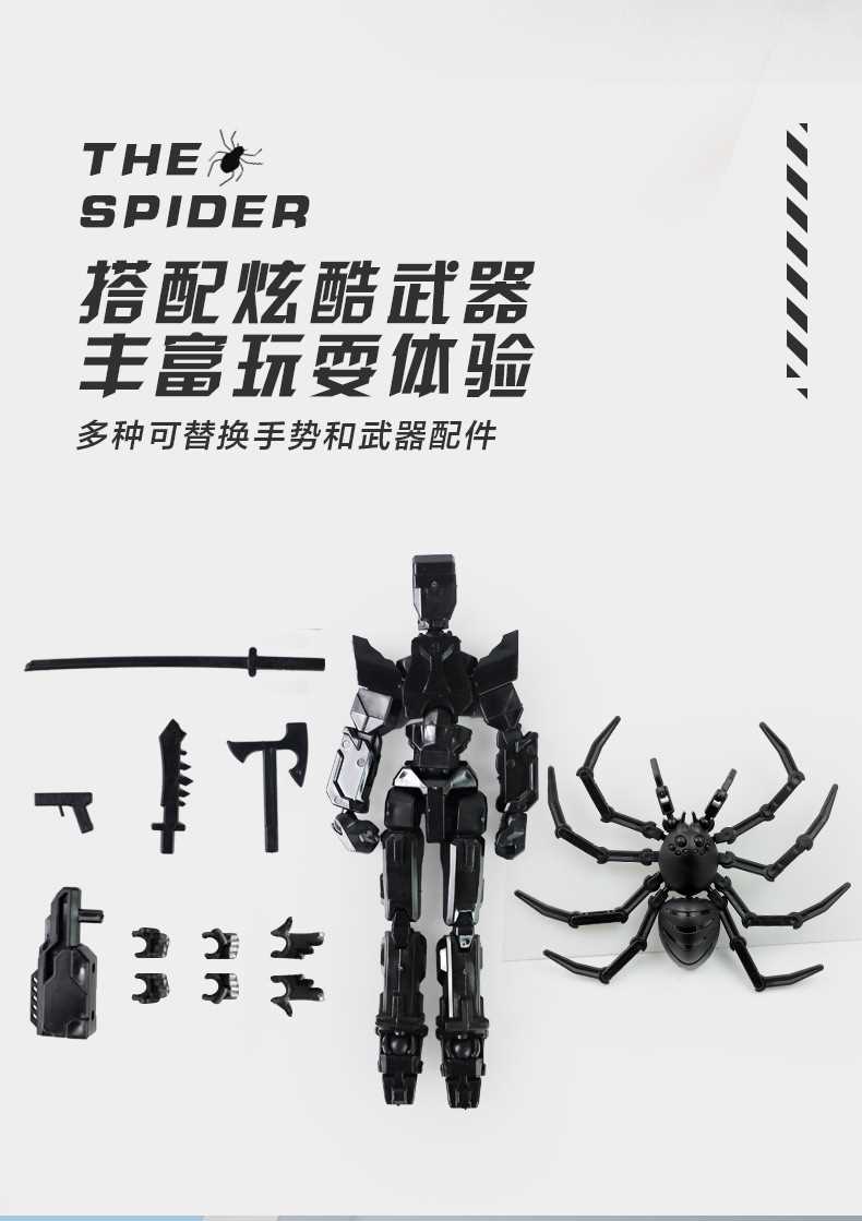 [opp bag] white and black-fit spider doll (3 pairs of gestures and 5 weapons) 122g