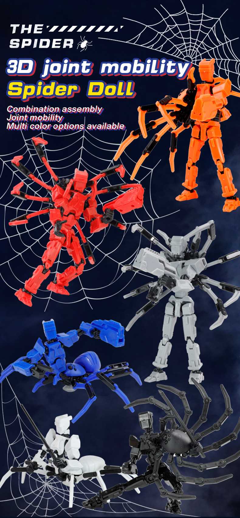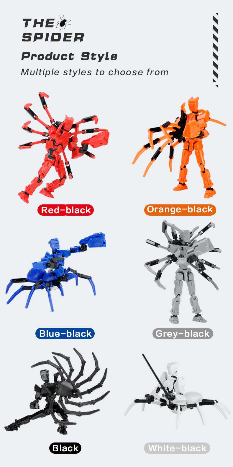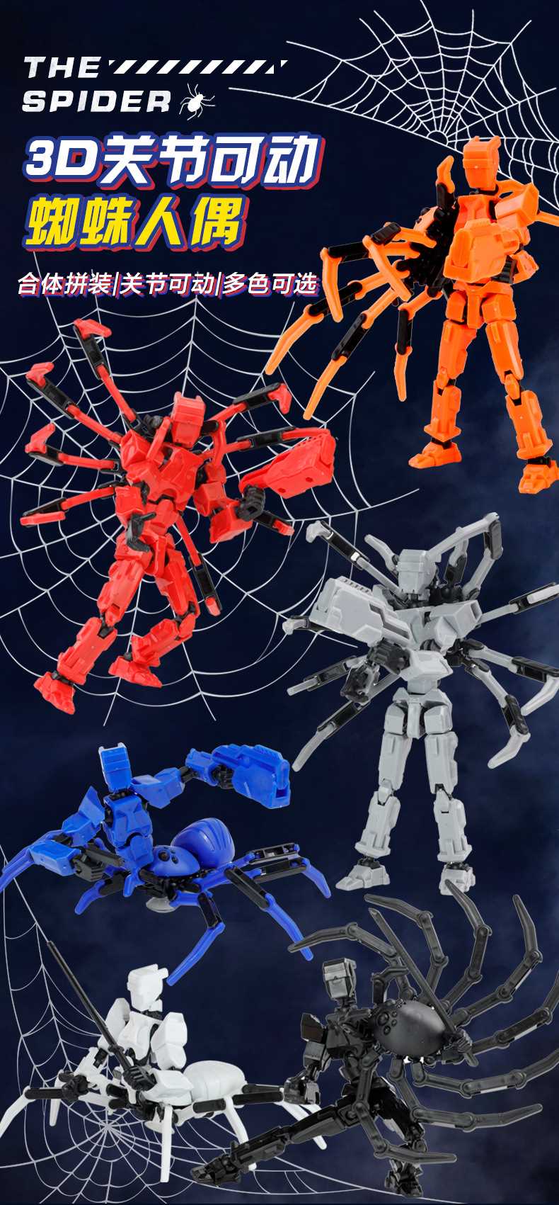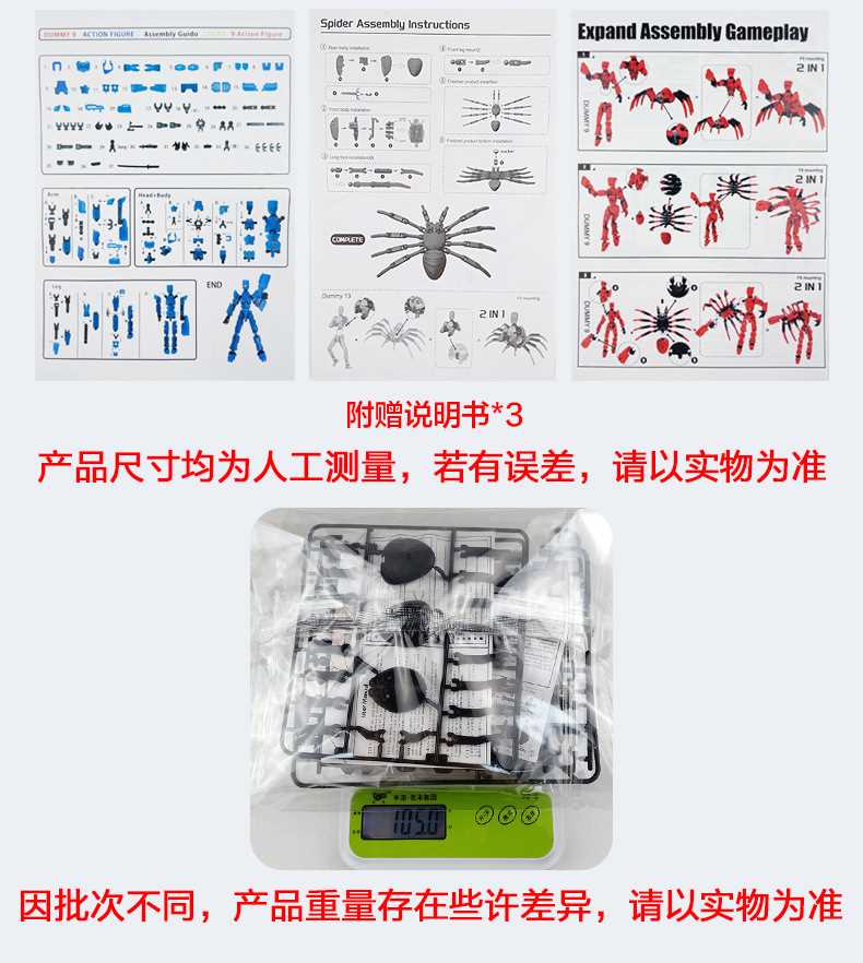 [opp bag] white and black-fit spider doll (3 pairs of gestures and 5 weapons) 122g