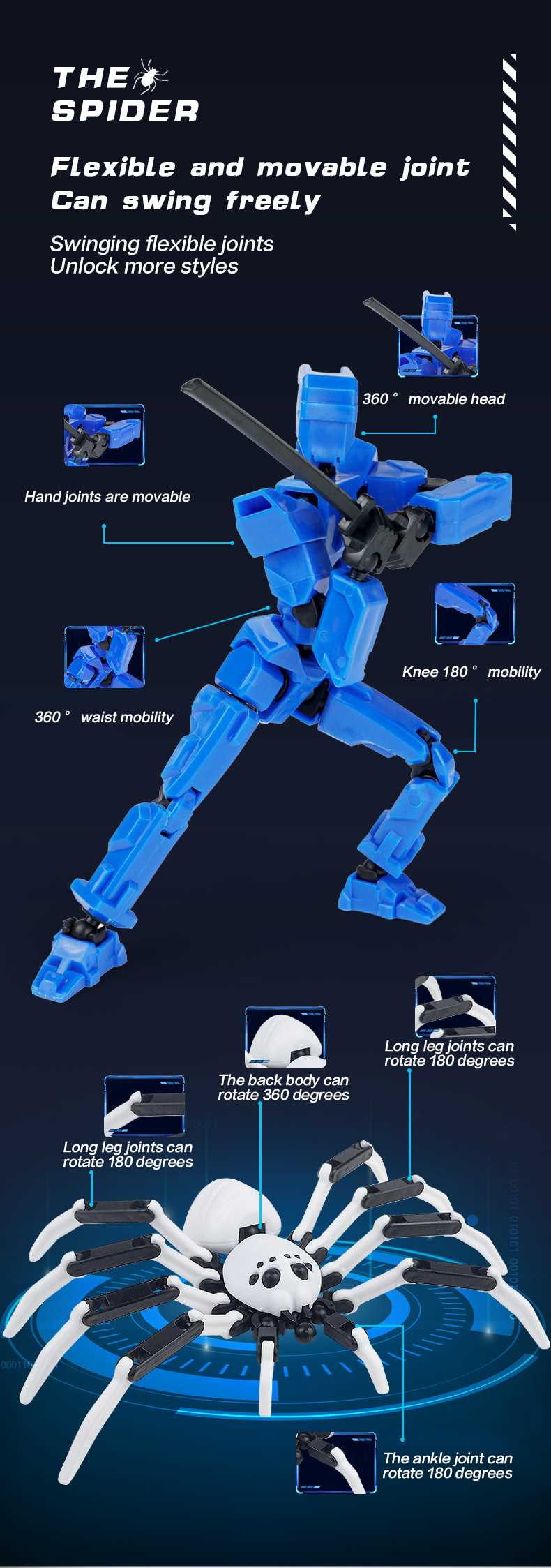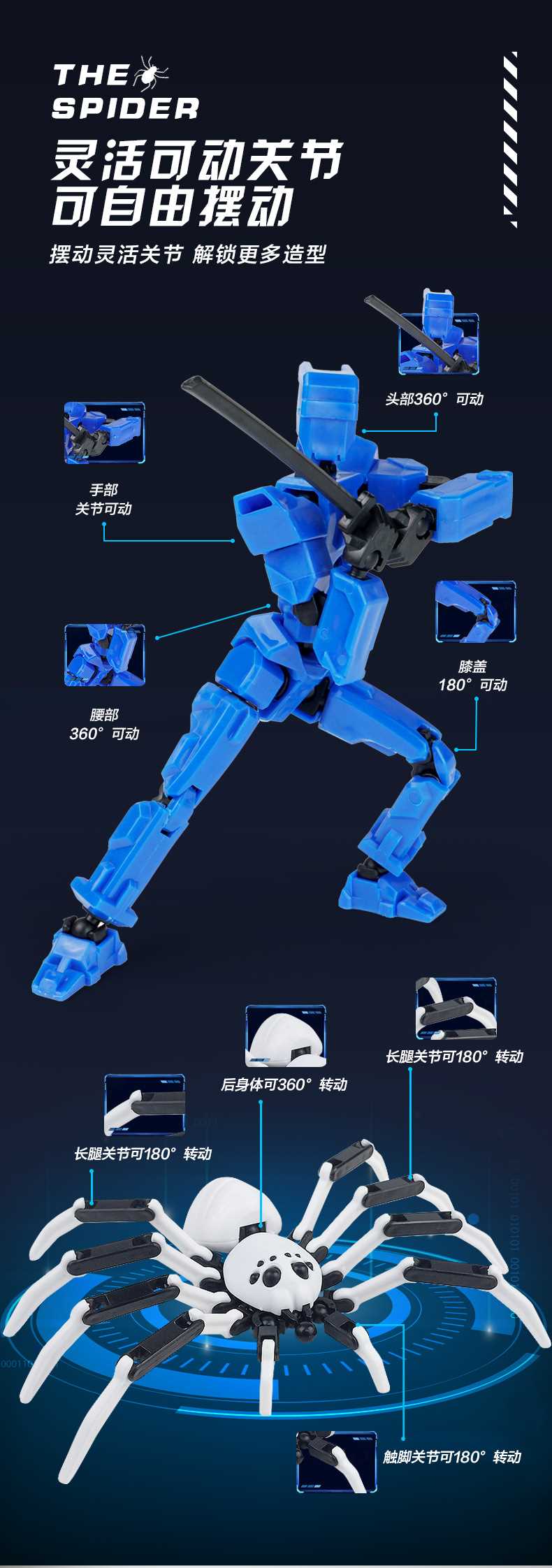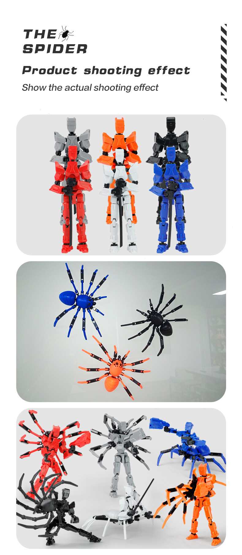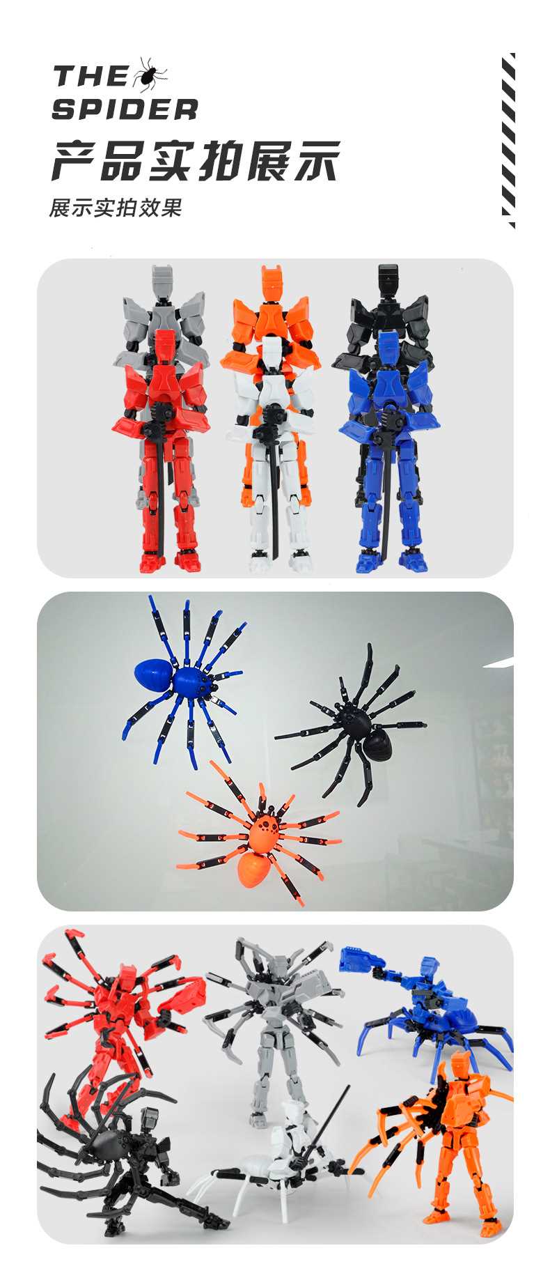 [opp bag] white and black-fit spider doll (3 pairs of gestures and 5 weapons) 122g