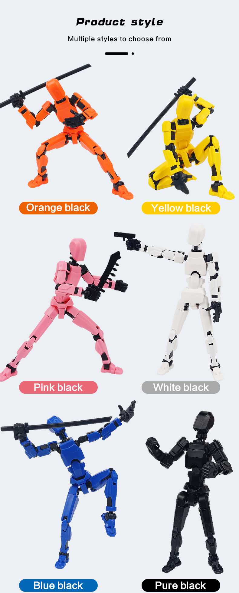 [opp bag] pure black-multi-joint doll (3 pairs of gestures and 4 weapons) 66g