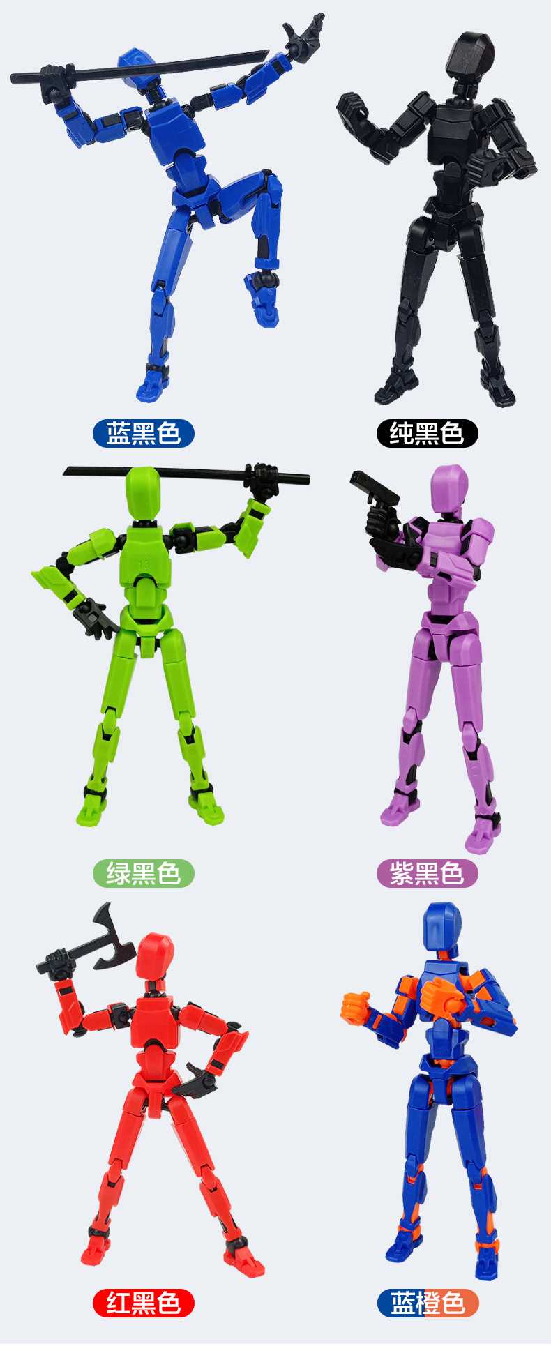 [opp bag] transparent black-multi-joint doll (3 pairs of gestures and 4 weapons) 66g