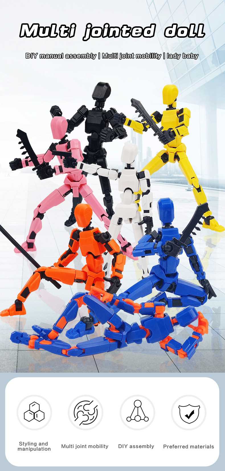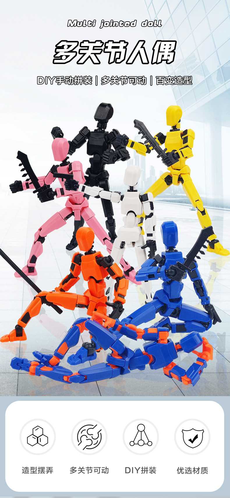 [opp bag] blue orange-multi-joint doll (3 pairs of gestures and 4 weapons) 66g