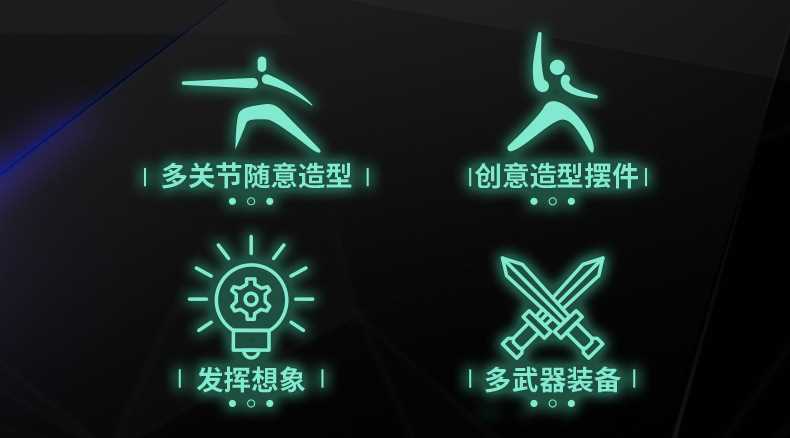[opp bag] green and black-multi-joint doll (3 pairs of gestures and 4 weapons) 66g