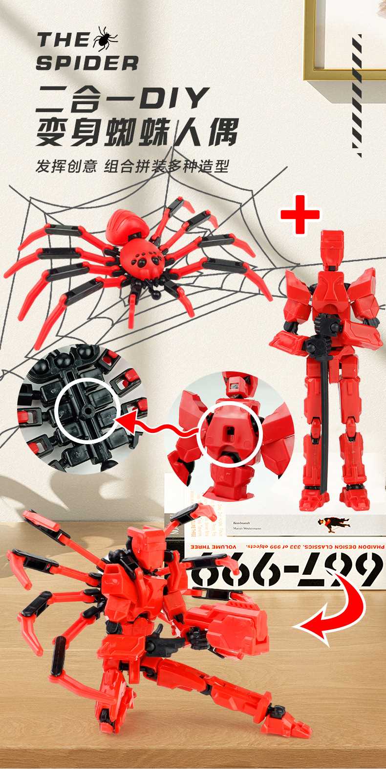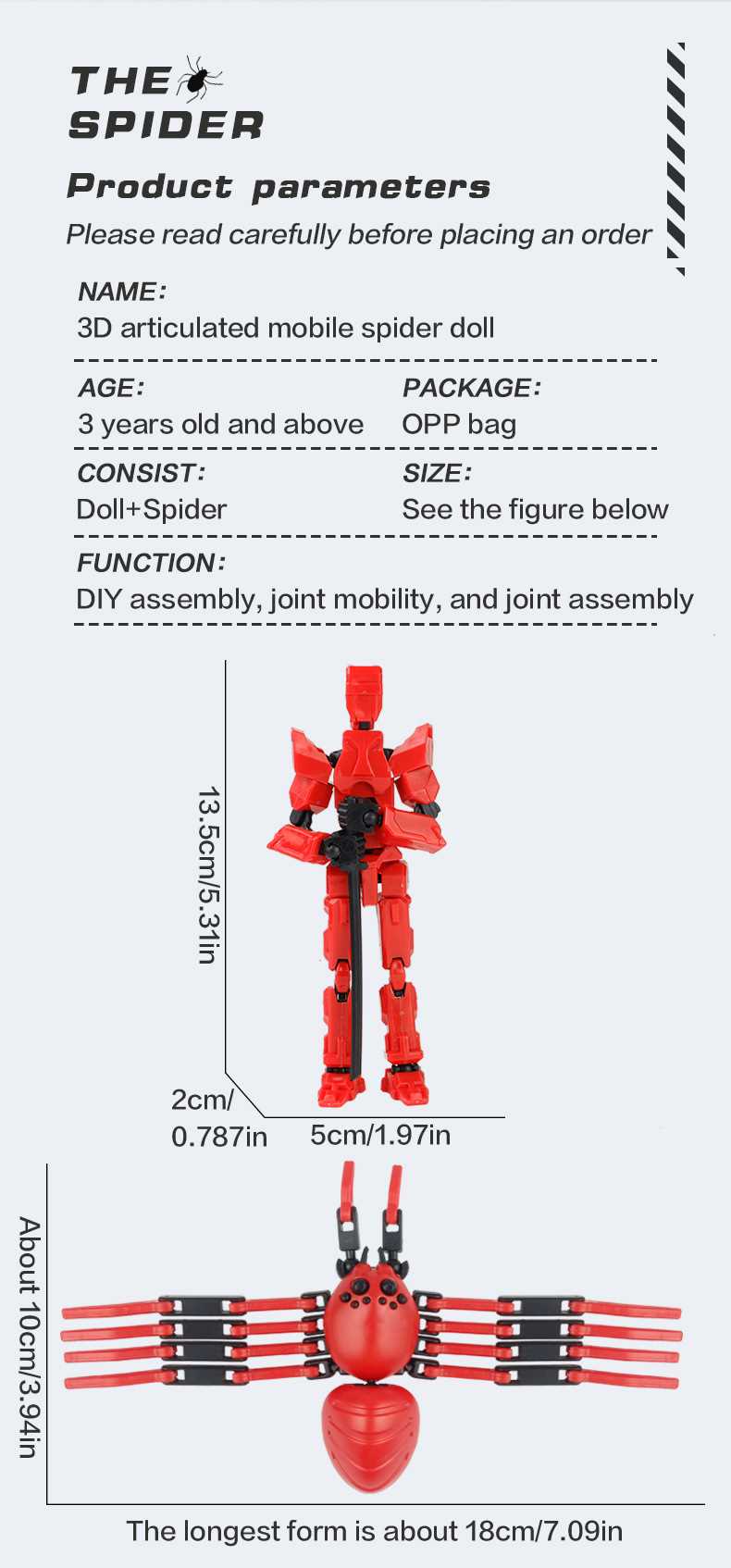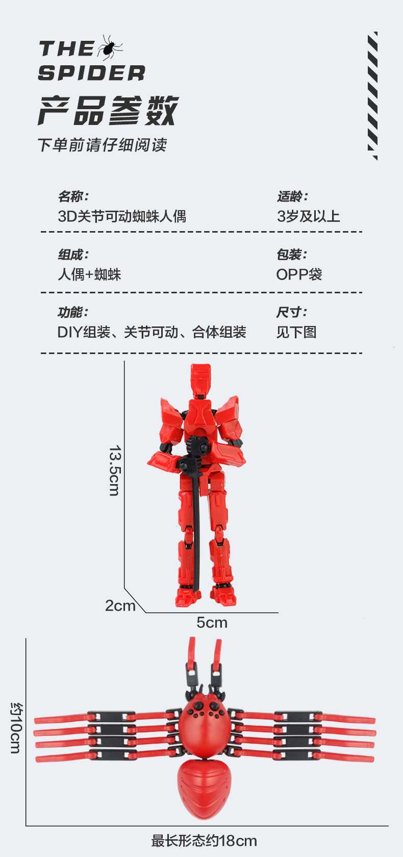 [opp bag] red and black-fit spider doll (3 pairs of gestures and 5 weapons) 122g