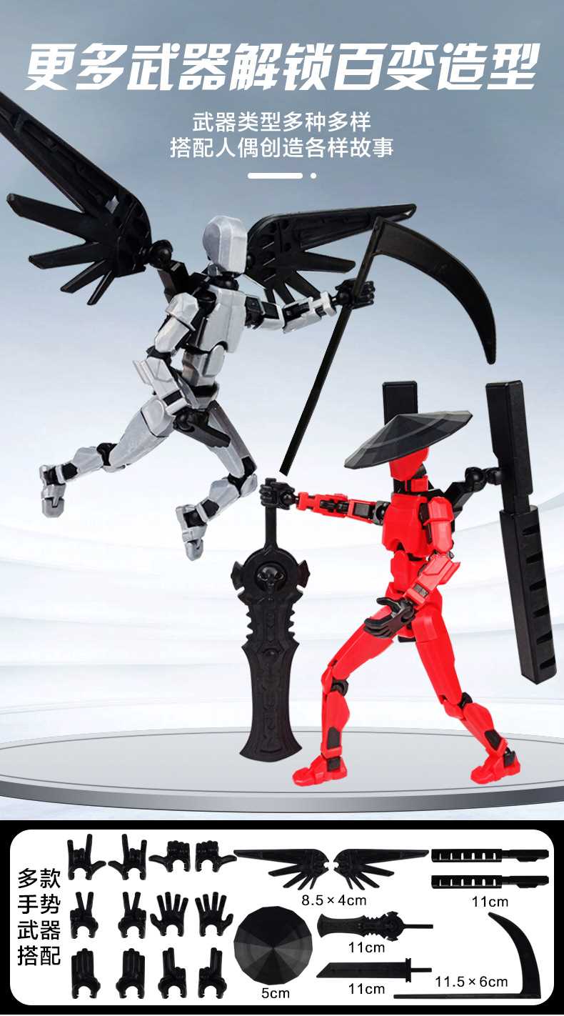 [opp bag] red and black-multi-joint doll (3 pairs of gestures and 4 weapons) 66g