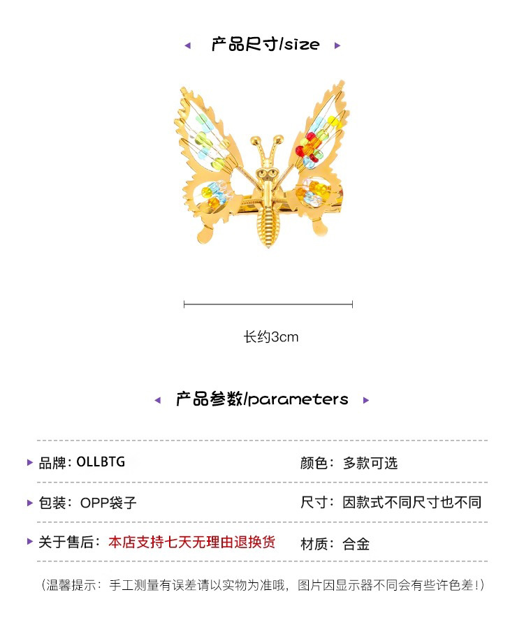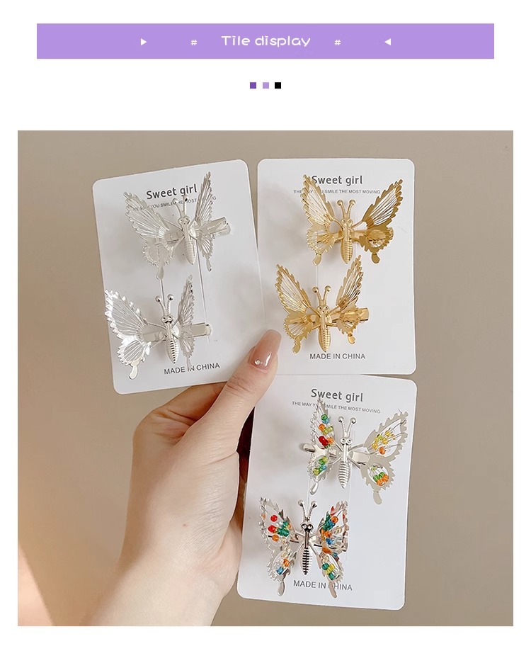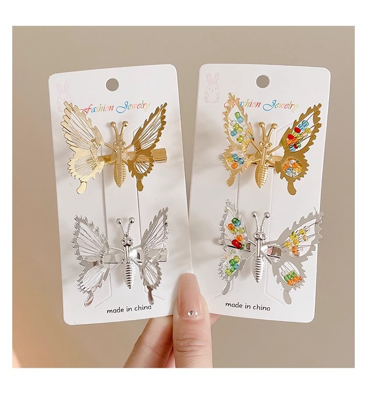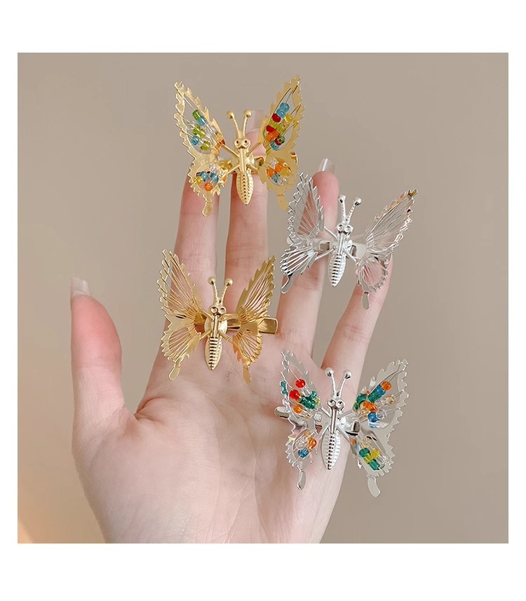 3# colorful beads golden butterfly side clip.