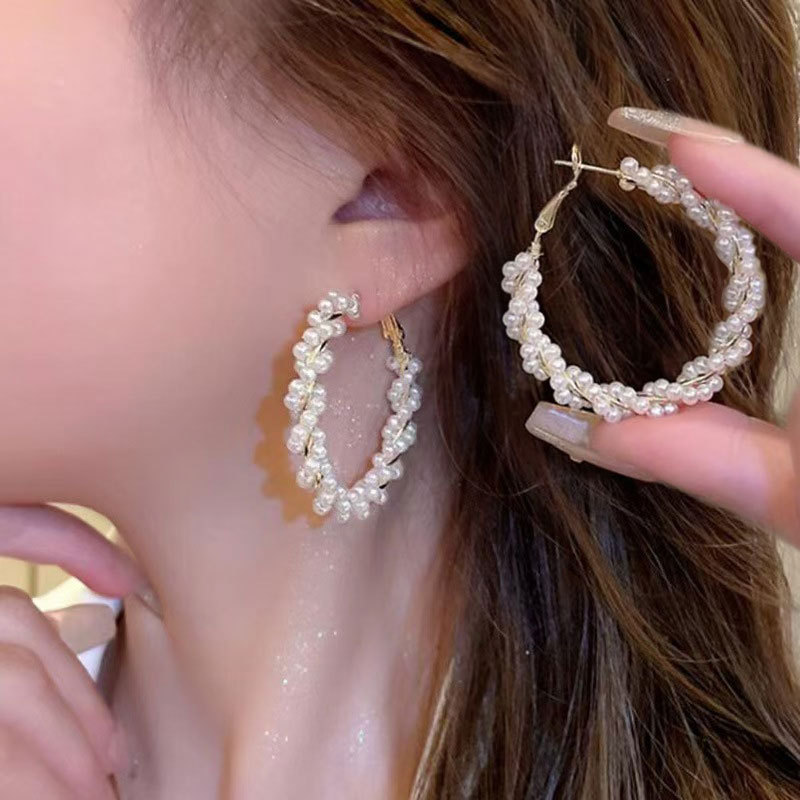 Coil pearl earrings with a sense of high-end luxury and low-key, S925 silver needles, large ear rings for women, elegant and fashion jewelry wholesale supply.
