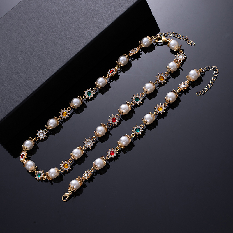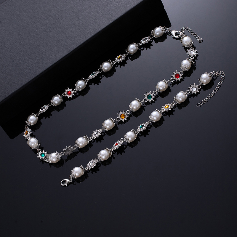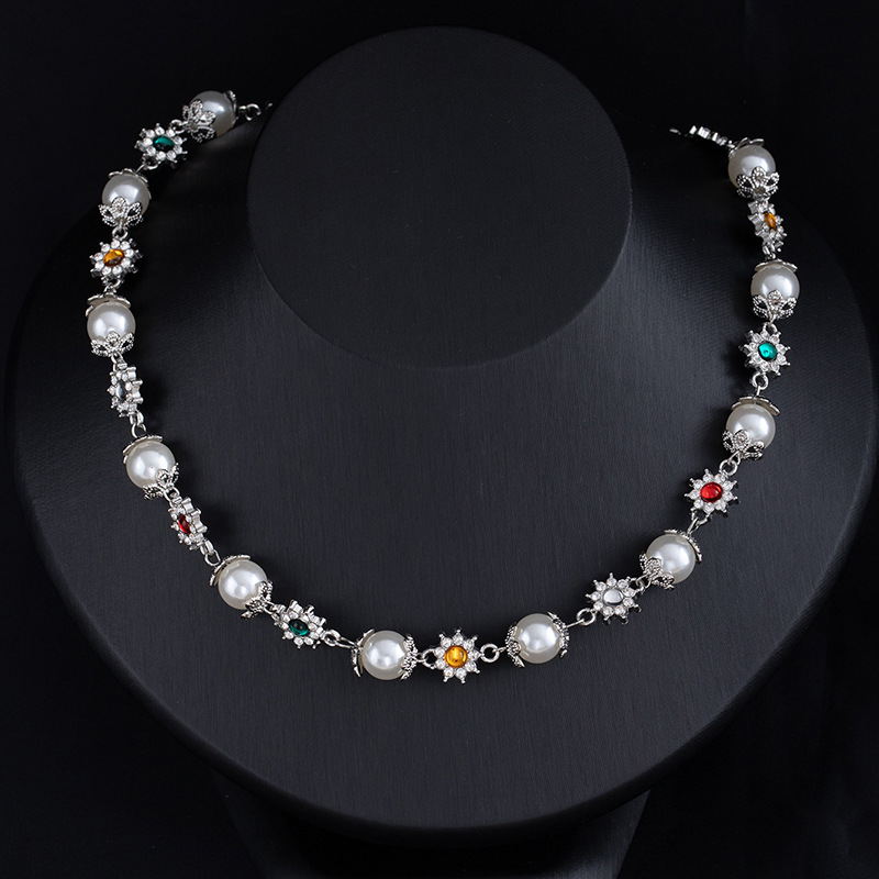 European and American hip-hop pearl flower necklace for men with a sense of high-end fashion and individuality, popular cross-border men's jewelry, hip-hop cool hand jewelry wholesale supply