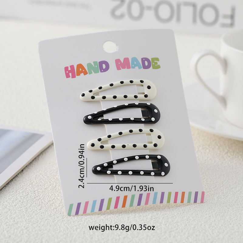 Black and white polka dot hair clips for women, side bangs hair clip, baby hair-friendly bb clips, universal hair accessories, wholesale supply