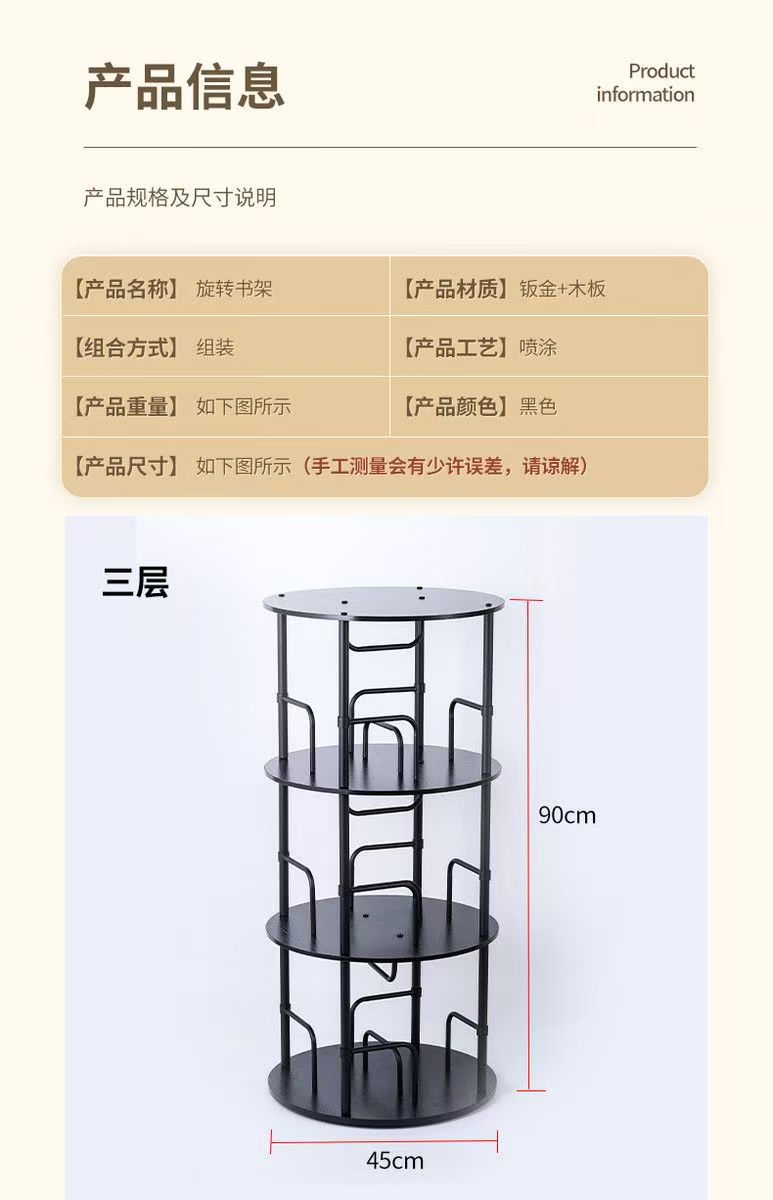 multi-layer bookcase living room storage storage shelf study floor round shelf rotating bookshelf wholesale