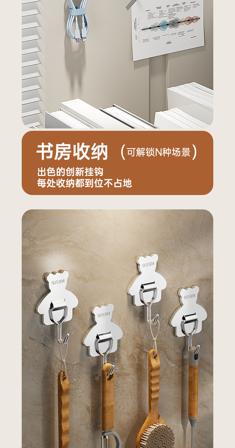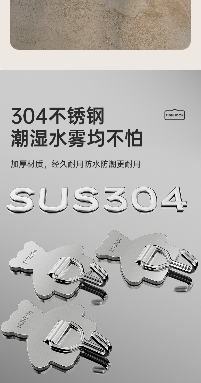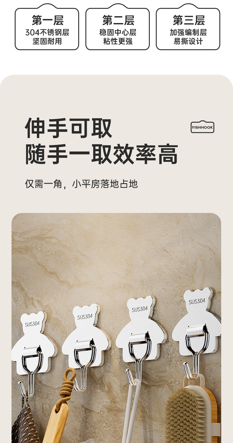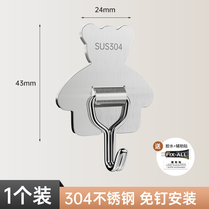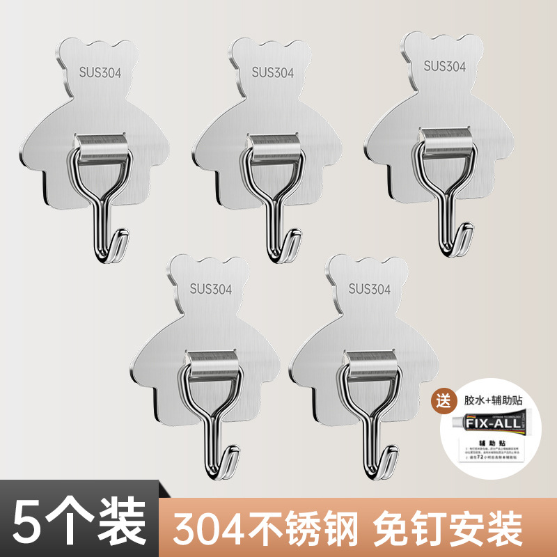 cross-border 304 stainless steel hook strong load-bearing punch-free 3m thickened sticky hook bathroom moisture-proof kitchen storage hook