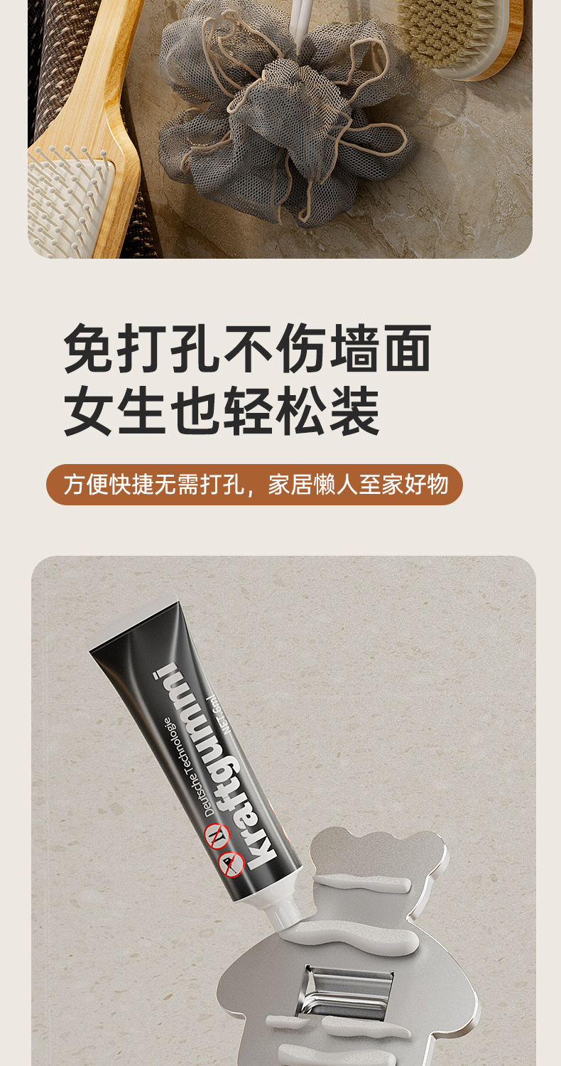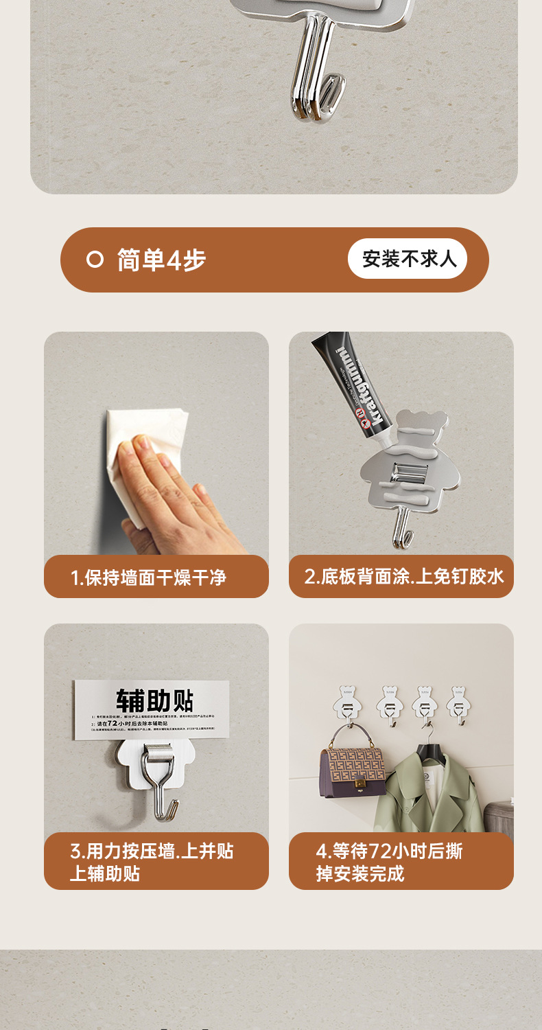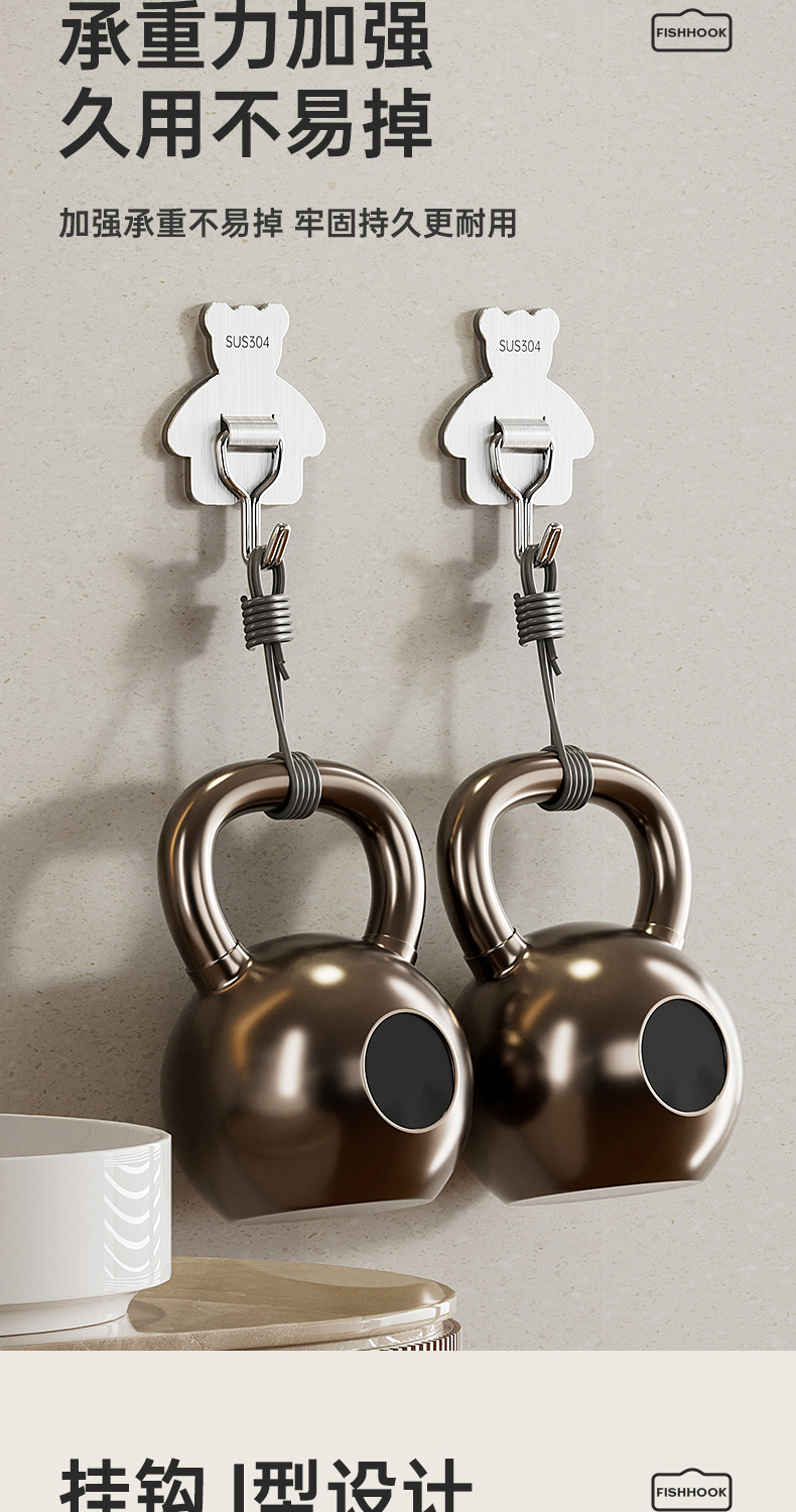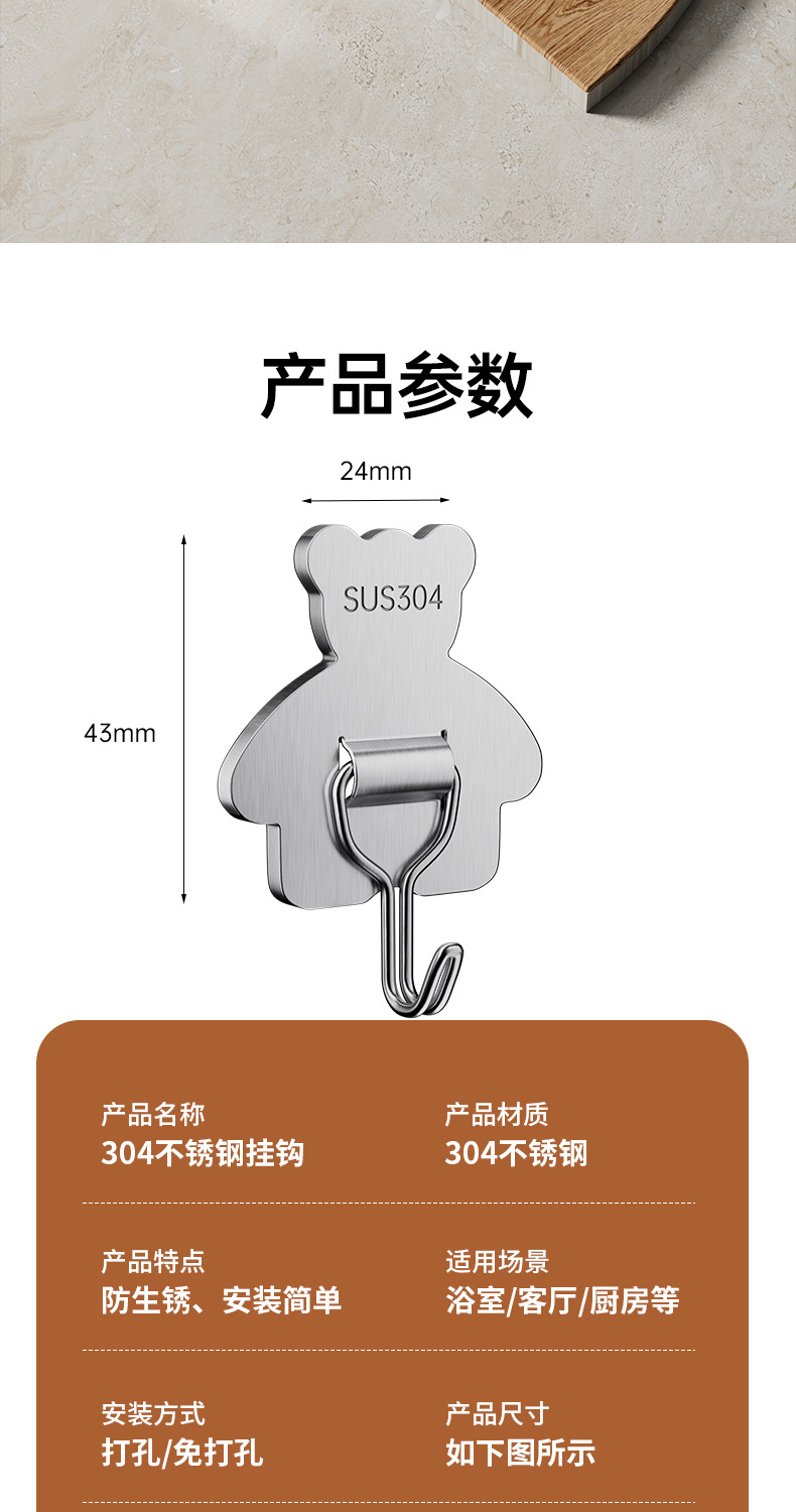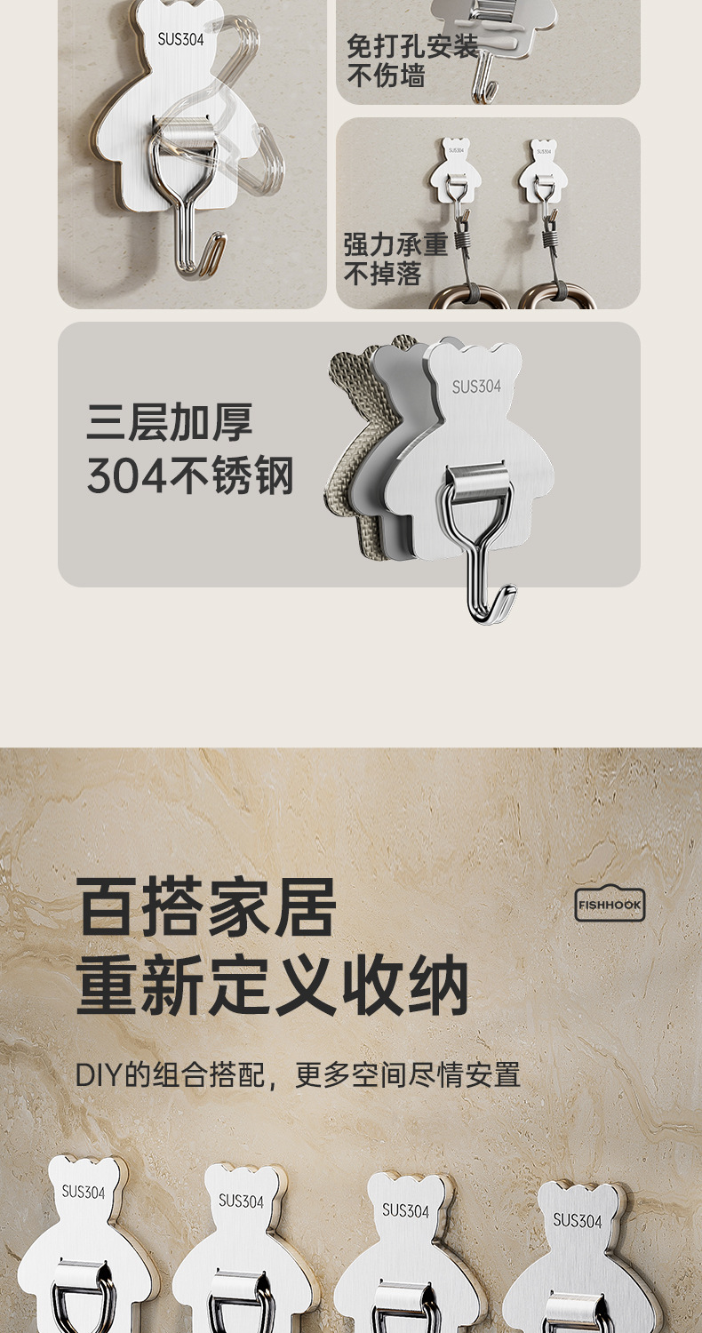 cross-border 304 stainless steel hook strong load-bearing punch-free 3m thickened sticky hook bathroom moisture-proof kitchen storage hook