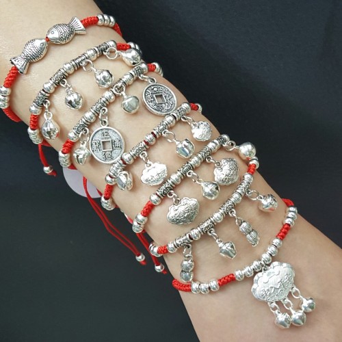 Street stall hot-selling Miao silver red thread braided bracelet Luck Miao silver ankle chain Red thread braided alloy Tibetan silver bracelet