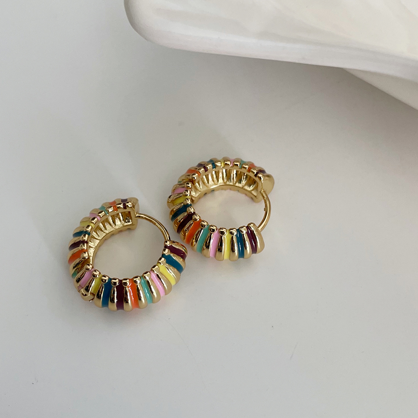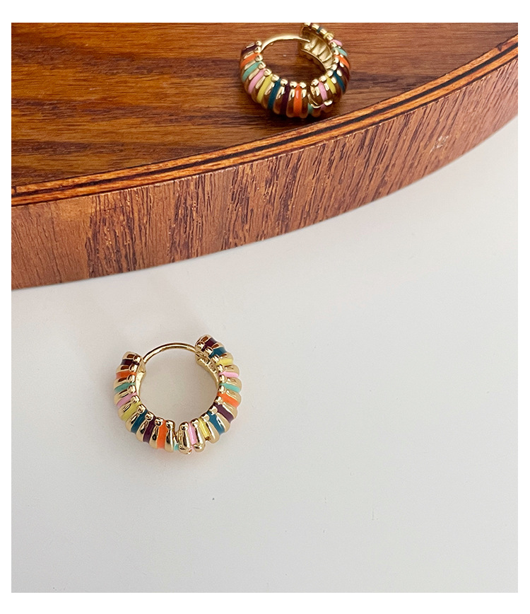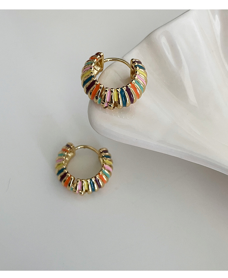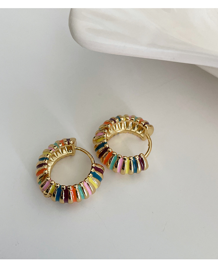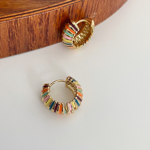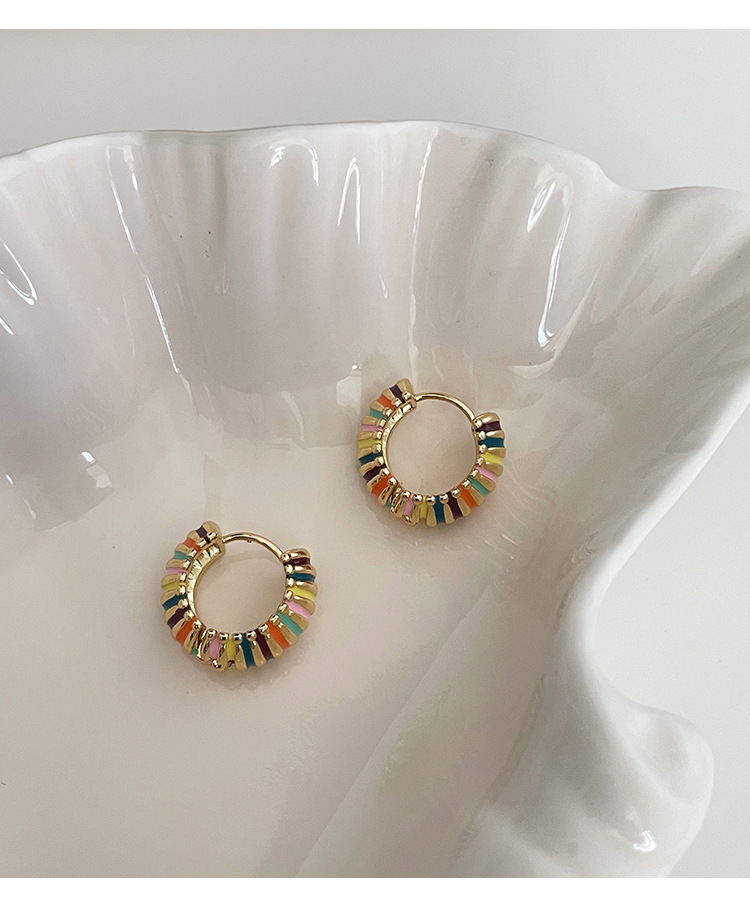 french retro round rainbow color ear ring light luxury temperament dripping oil ear clip elegant hong kong style qingdao special-interest earrings women 中文版