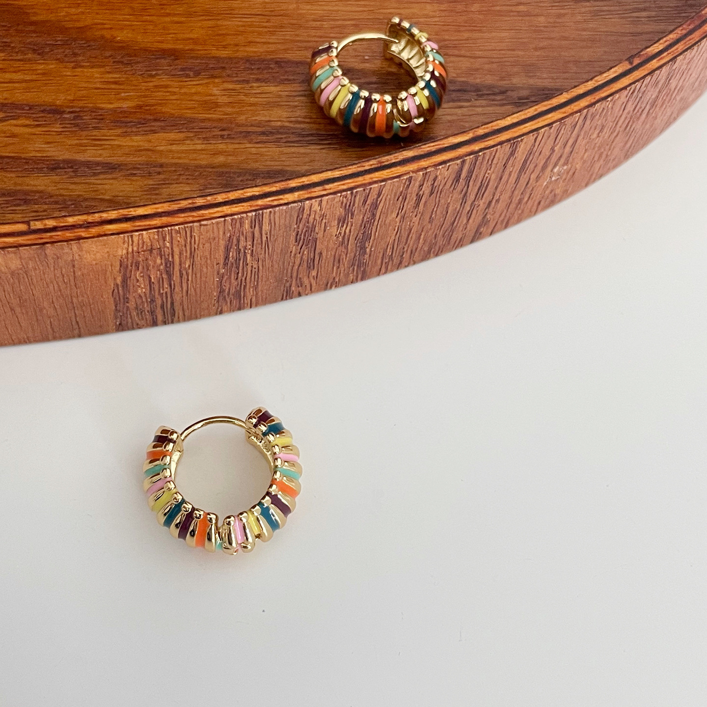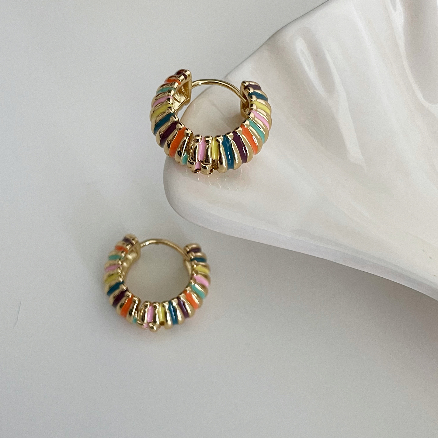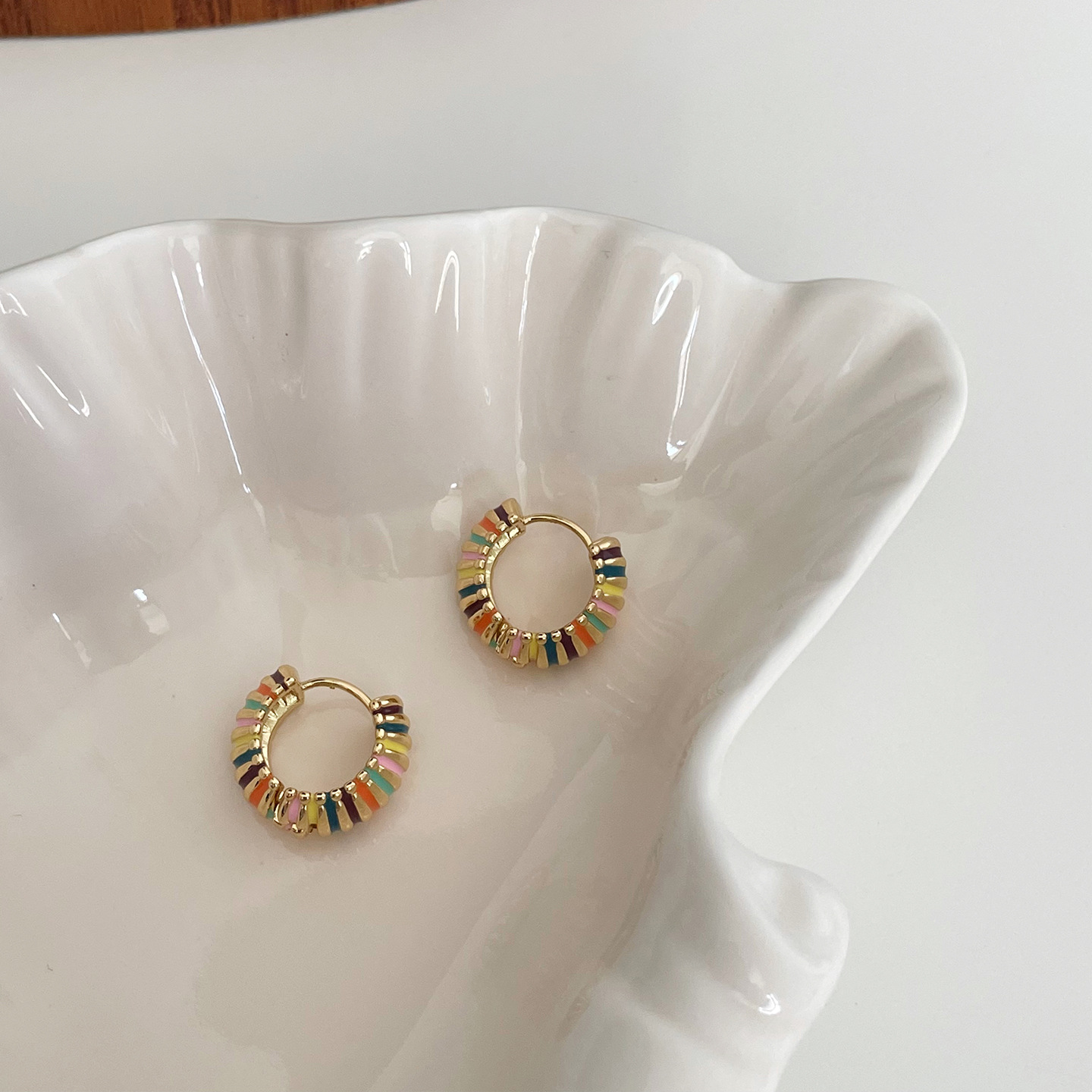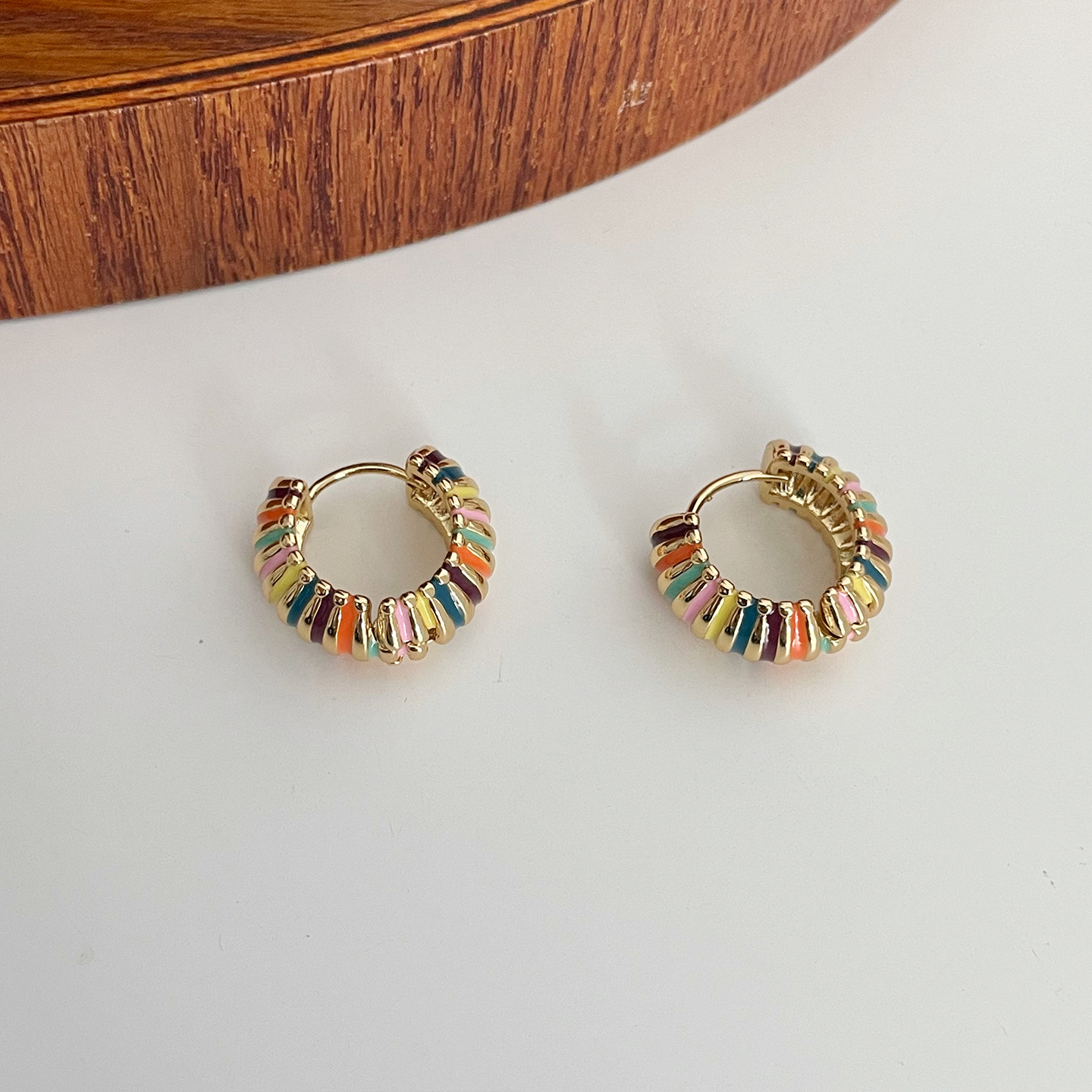 french retro round rainbow color ear ring light luxury temperament dripping oil ear clip elegant hong kong style qingdao special-interest earrings women 中文版