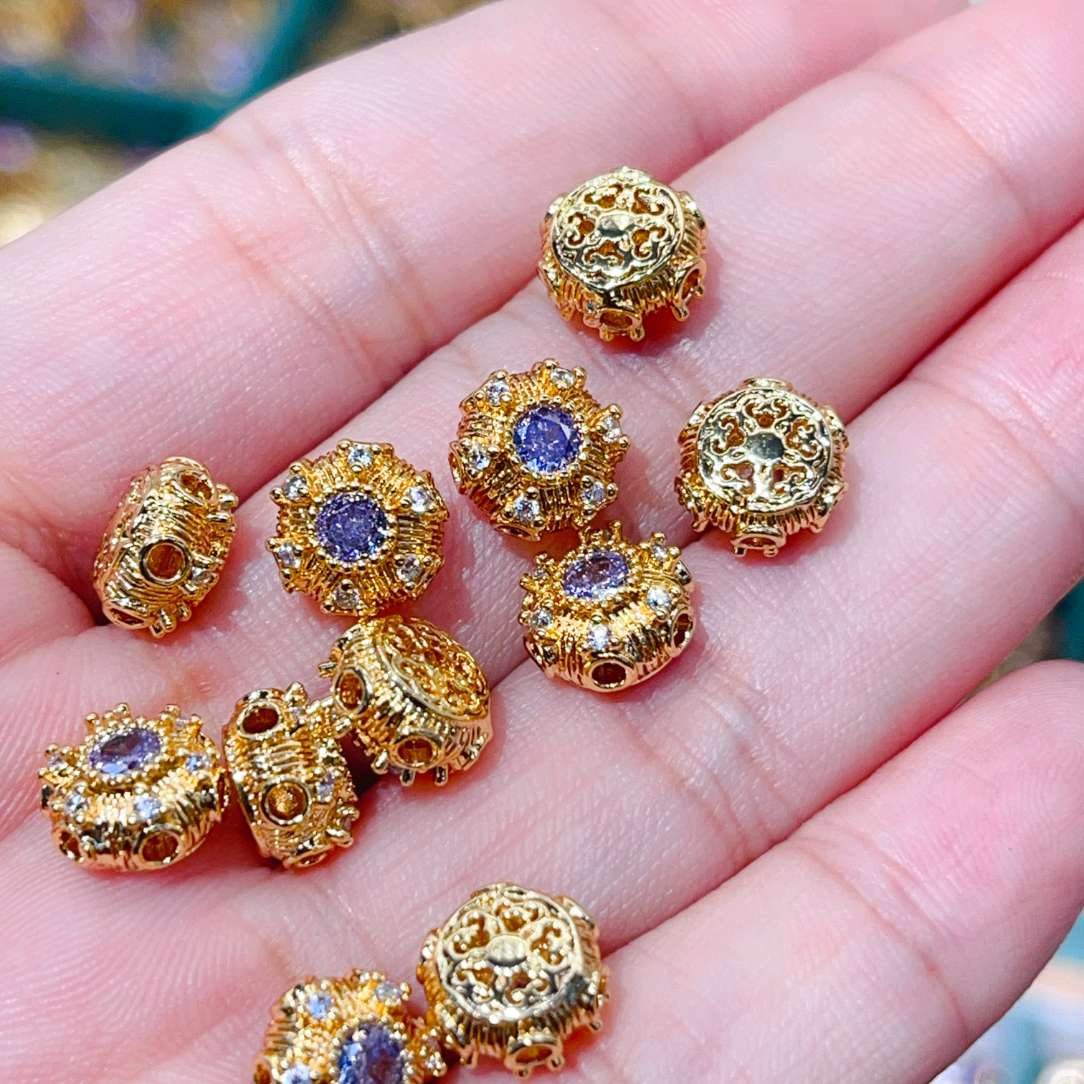 real gold purple zirconium flower-shaped straight hole 中文版